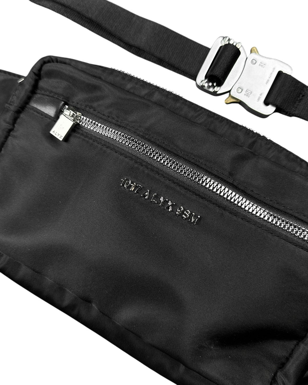 1017 ALYX 9SM додає свій фірмовий штрих до основного елементу вуличного одягу з цією поясною сумкою. Вона має дві знакові пряжки бренду з обох боків, що дозволяє регулювати носіння, а також сучасний дизайн, характерний для цього лейблу. Ви також знайдете зовнішню кишеню для легкого доступу до дрібних речей та металеве брендування сріблястого відтінку спереду.