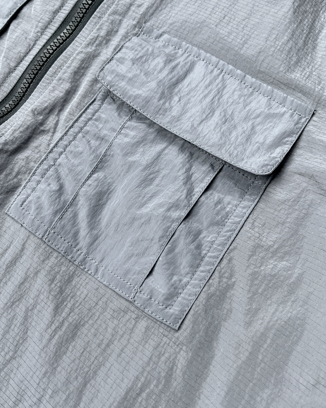 Об'єднавши естетику металу з культурою повсякденного стилю, італійський лейбл Stone Island прагне привнести в колекцію преміум-класу вибухову дозу кольору та інноваційні методи виробництва за допомогою цієї нейлонової верхньої сорочки. Гібрид сорочки і куртки, виконаний з міцного матеріалу ріпстоп, був перетворений в процесі забарвлення одягу, надавши силуету сяйво лаванди. У комплекті з двосторонньою застібкою-блискавкою та оздобленням, що перешкоджає ковзанню, щоб забезпечити тактильний знос у будь-якій ситуації.