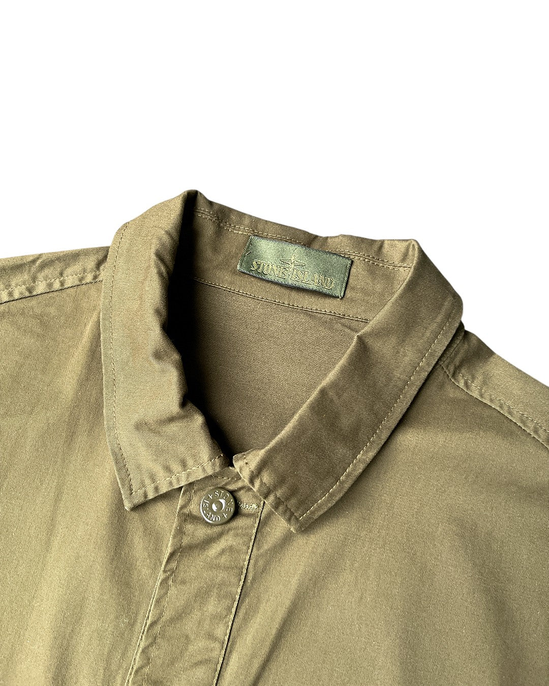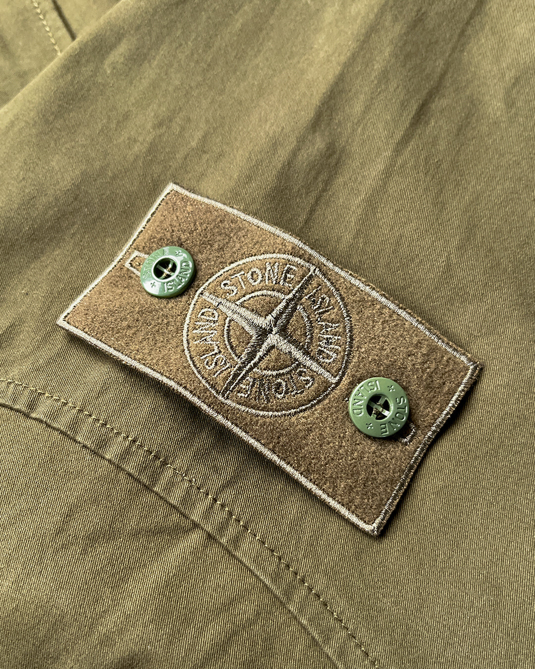 Stone Island використовує колекцію GHOST PIECE для експериментів з мистецтвом камуфляжу, створюючи непомітні утилітарні речі, такі як ця куртка-рубашка кольору хакі. Вона виготовлена з міцної суміші бавовни та еластану.