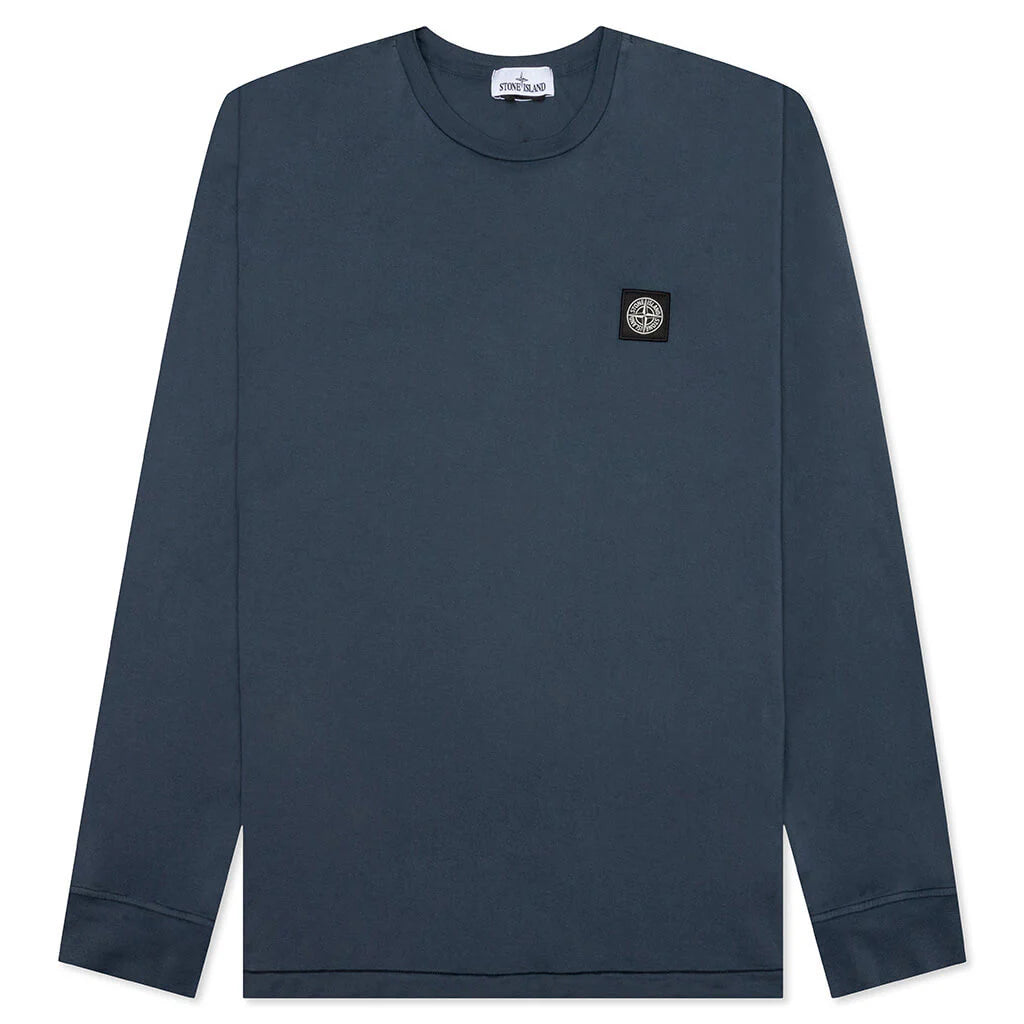 Лонгслів із бавовняного джерсі, пофарбований у готовому вигляді для насиченого та рівномірного відтінку. Модель має круглу горловину і манжети з еластичною обробкою та декорована нашивкою з емблемою Stone Island у вигляді троянди вітрів на грудях.