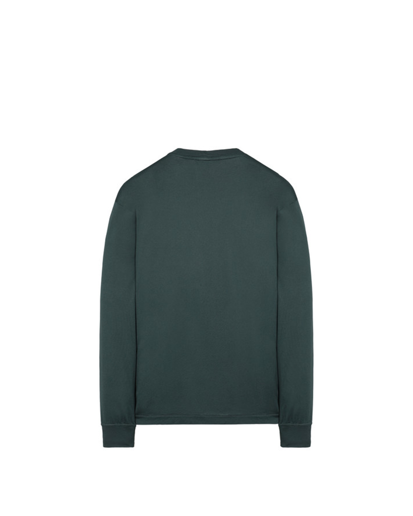 Лонгслів із бавовняного джерсі, пофарбований у готовому вигляді для насиченого та рівномірного відтінку. Модель має круглу горловину і манжети з еластичною обробкою та декорована нашивкою з емблемою Stone Island у вигляді троянди вітрів на грудях.