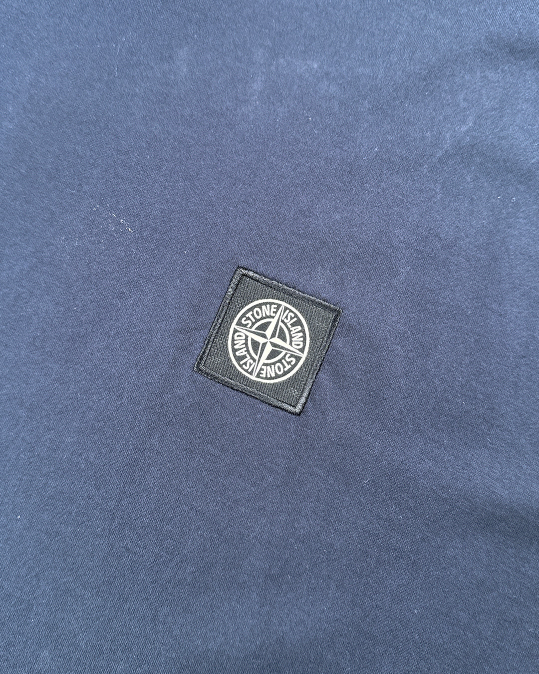 Футболка з короткими рукавами з мерсеризованого бавовняного джерсі. Виріб пофарбовано в готовому вигляді. Горловина в гумку. На грудях аплікація з емблемою Stone Island у вигляді рози вітрів. Рукава і низ оброблені вузьким кантом.