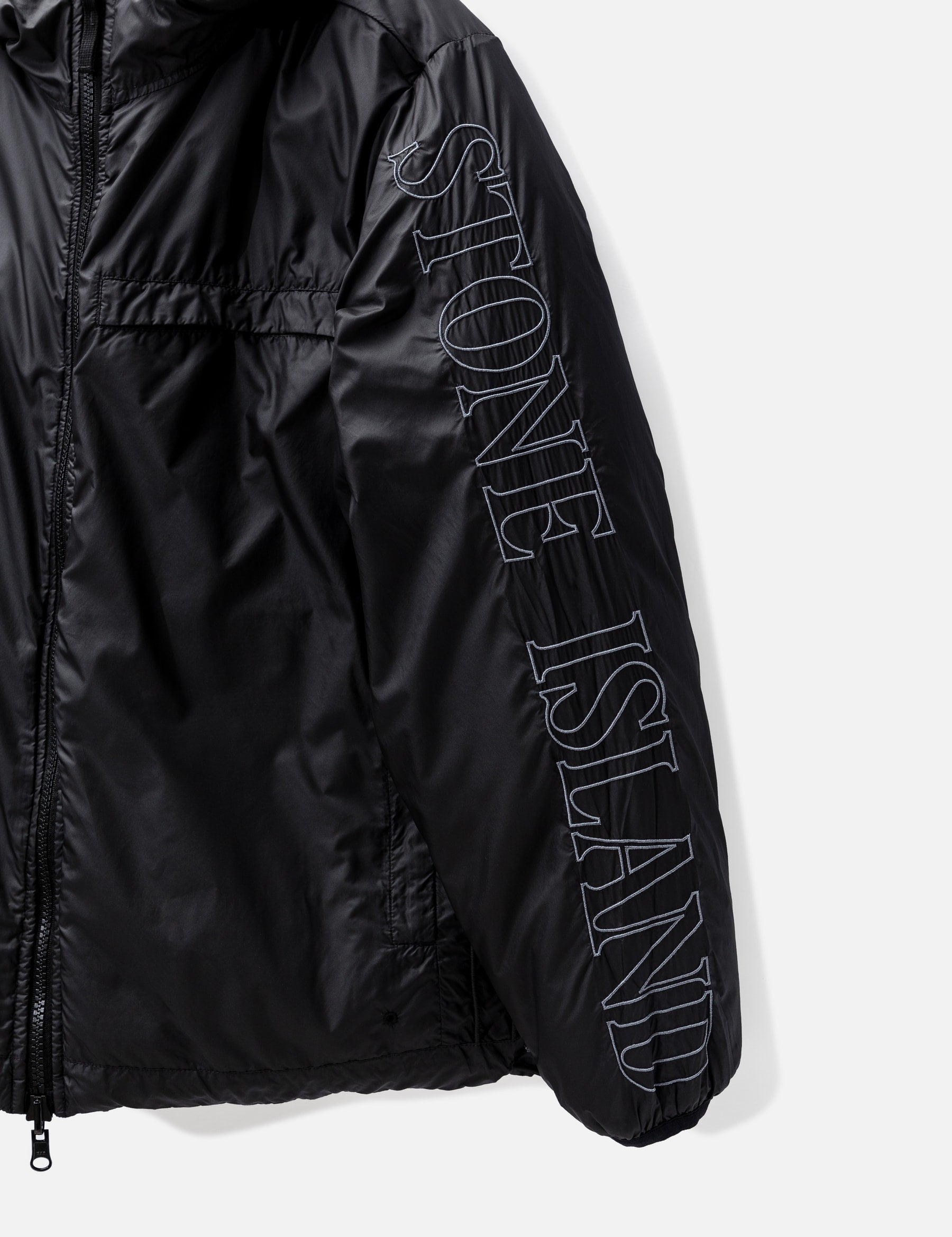 Цей двосторонній пуховик від Stone Island виготовлений із запатентованого матеріалу Nylon Metal, що надає йому металевого та переливчастого вигляду після складного процесу фарбування одягу. Набивка з качиного пуху та пера забезпечує тепло, а зручний капюшон необхідний для захисту від негоди. На рукаві зі зворотного боку куртки ви знайдете контрастну вишивку з написом Stone Island. Куртка доповнена кишенями для рук з обох боків для надійного зберігання дрібних предметів першої необхідності.