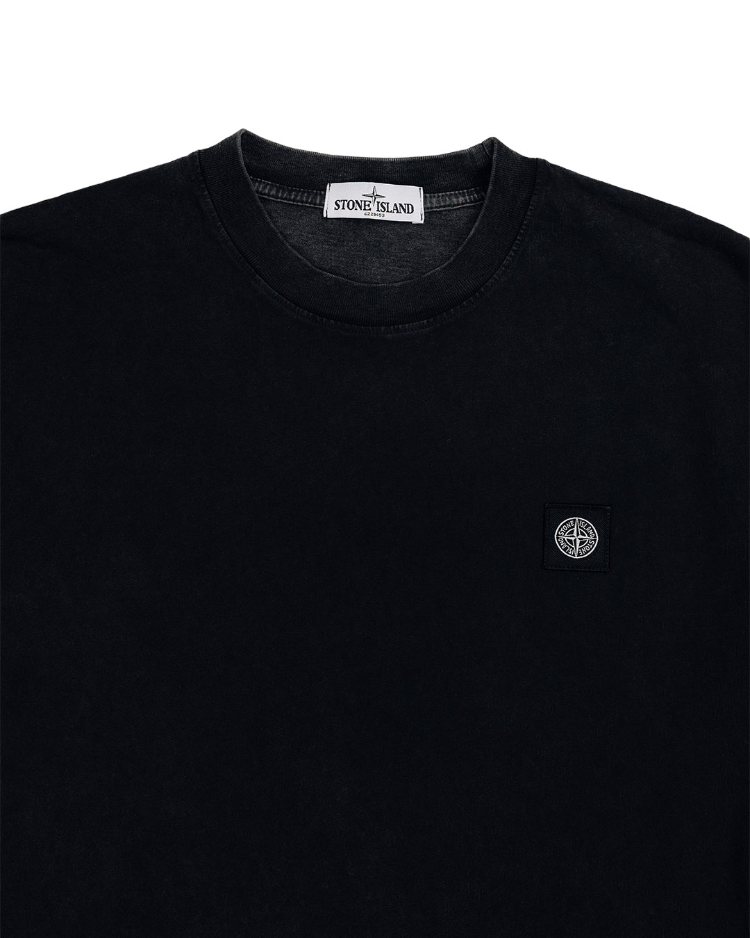Базова футболка від Stone Island з колекції SS2025 виготовлена з бавовняного джерсі, пофарбована в готовому вигляді для досягнення ефекту м’якого вицвітання. Модель має класичний крій з трохи заниженою лінією плеча, круглу горловину з ребристою обробкою та короткі рукава. На грудях — фірмова нашивка з логотипом-компасом, що додає речі впізнаваності Stone Island.