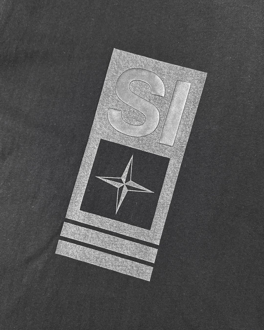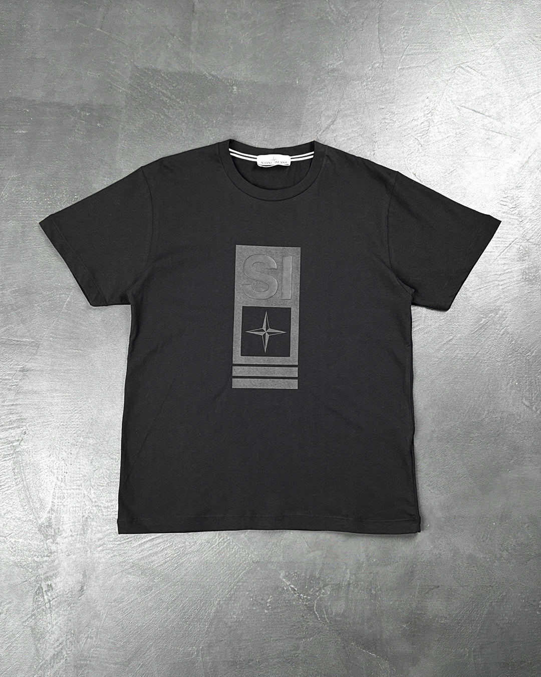 Скроєна для облягаючого крою, ця футболка має ребристий виріз горловини та графічний принт "Abbreviation One" у формі квадрата, виконаний у поєднанні різних технік друку спереду. Невеликий логотип Stone Island Compass розташований під вирізом на спині.
