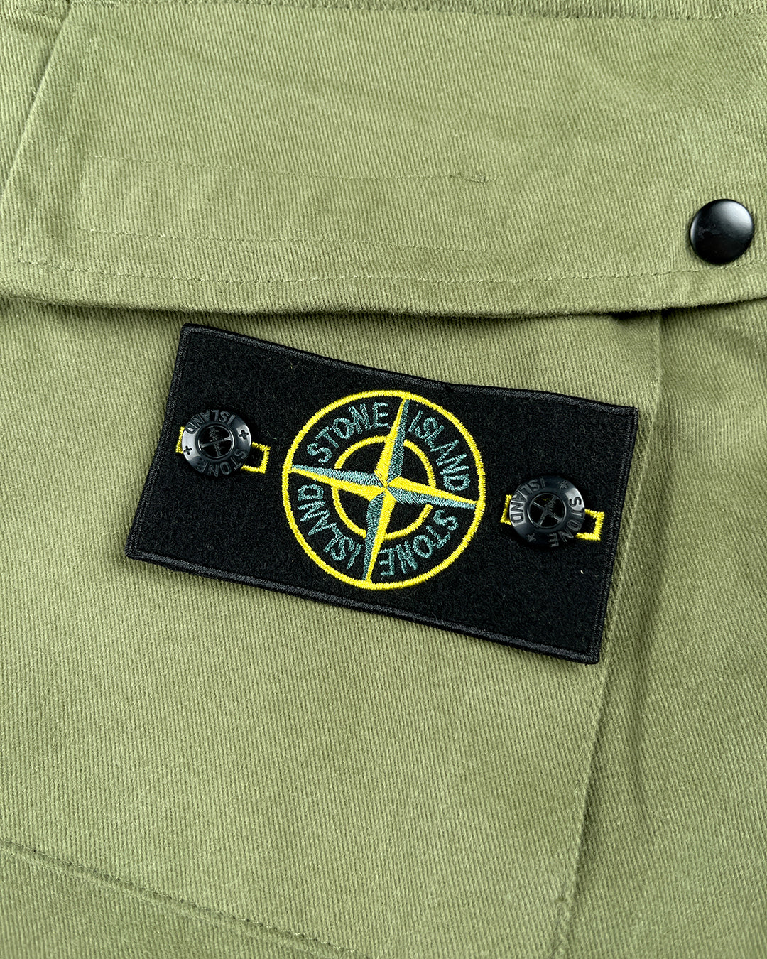 Мають регулярний завужений крій, поясні кишені на потайній блискавці, одну задню кишеню з потайною застібкою, кишеню з клапаном і потайними прес-шпильками на штанинах. Посилені наколінники, еластичні манжети та пояс з внутрішнім шнурком. Застібка на блискавку. На лівій кишені значок Stone Island.
