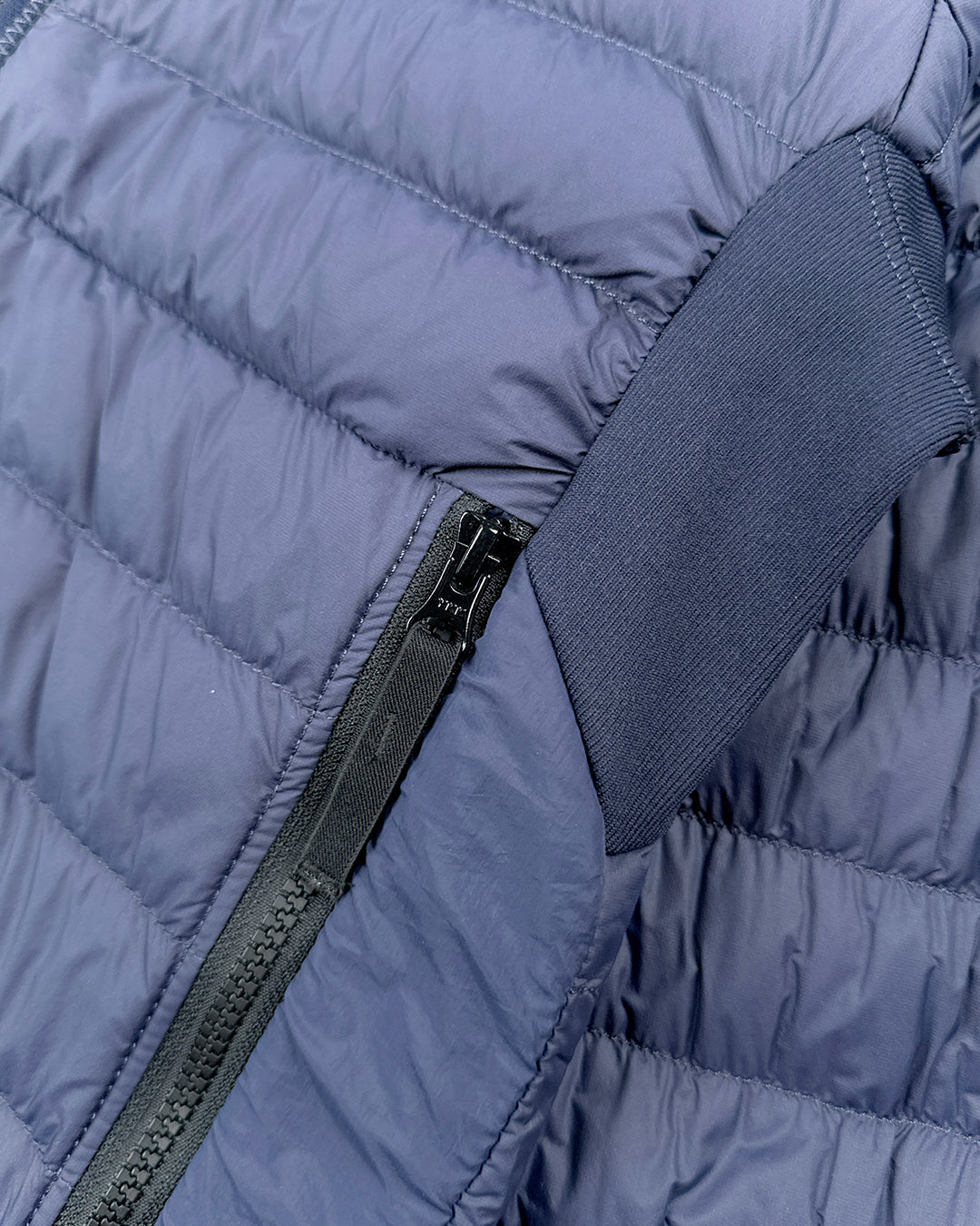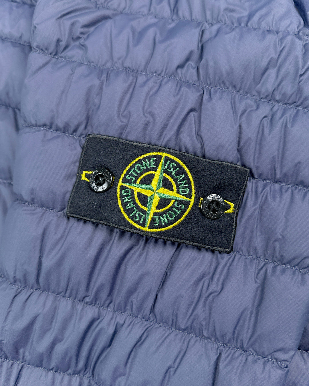Майстри технічного чоловічого одягу Stone Island представляють куртку-пуховик з пофарбованої мікропряжі з капюшоном Micro Yarn. Виготовлена з стьобаного нейлону на основі качиного пуху, ця легка куртка має захист від промокання та має дві кишені на блискавці спереду, а також знімну нашивку з компасом на рукаві, що є символом бренду.