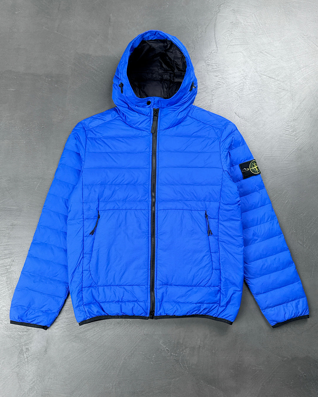 Куртка-пуховик від Stone Island виготовлена з інноваційного японського нейлону ripstop щільністю 12 ден і має покриття без розчинників, що забезпечує додатковий захист від негоди. Вона наповнена пухом для відчуття комфорту, а на одному рукаві прикрашена фірмовим компасом.