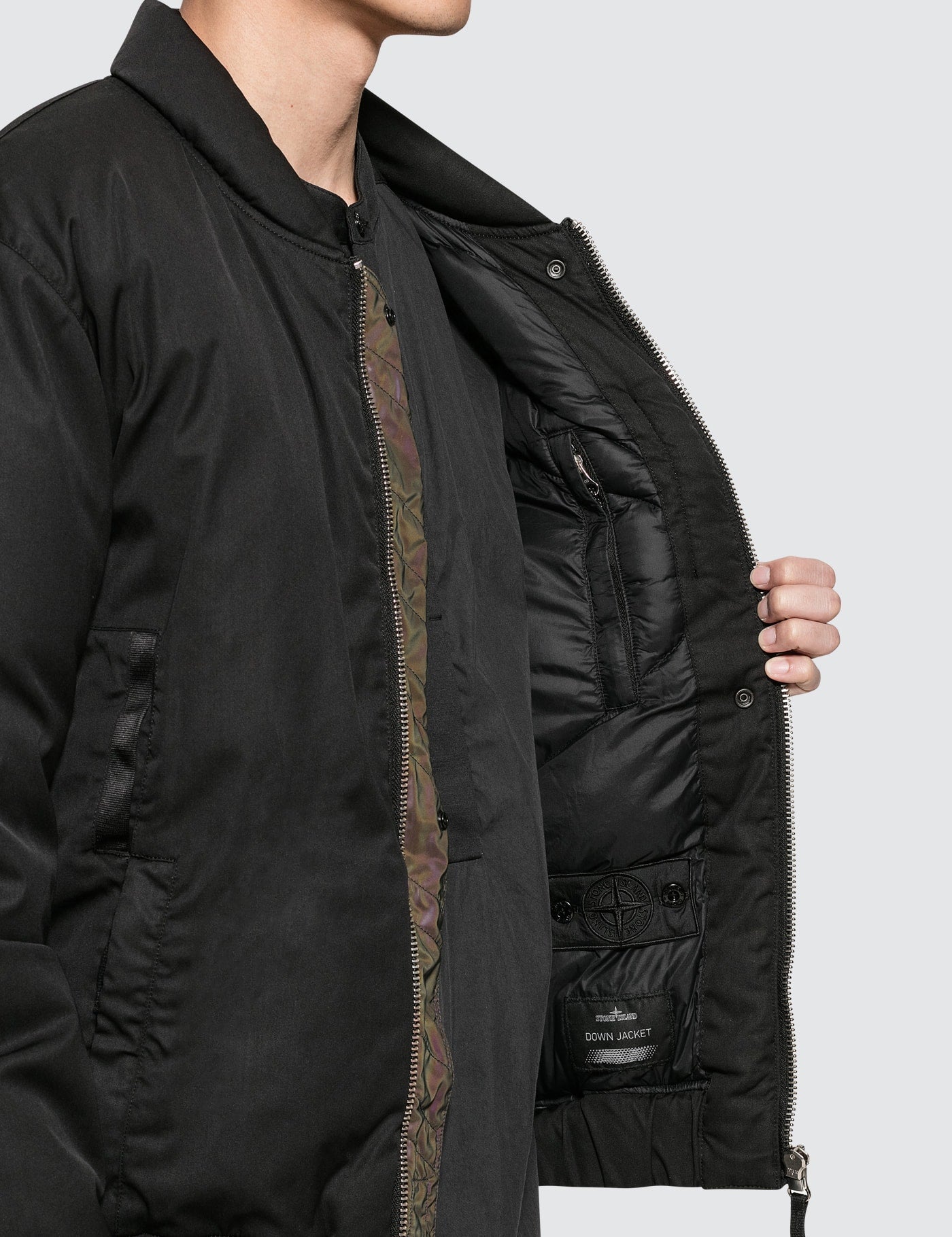 40401 Shadow Project Bomber Jacket — це інноваційний пуховик-бомбер, виготовлений із D-NW — одношарової тканини, яка поєднує нейлон і вовну з діагональним переплетенням. Така структура забезпечує легкість, міцність, еластичність і теплоізоляцію. Фінальна обробка спеціальним засобом проти крапель захищає тканину від води та бруду, а фарбування додає стильного вигляду.