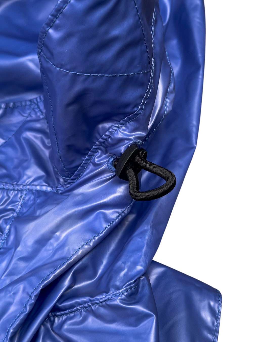 Захисний капюшон з козирком, контурний еластичний шнурок; важливий штормовий клапан фіксується застібкою та липучкою. Вшиті кишені для рук з потайними застібками-блискавками. Білий текстильний дослідницький значок Stone Island на лівому рукаві. Затяжні блискавки під рукавами та з боків. Затяжні застібки з боків знизу.