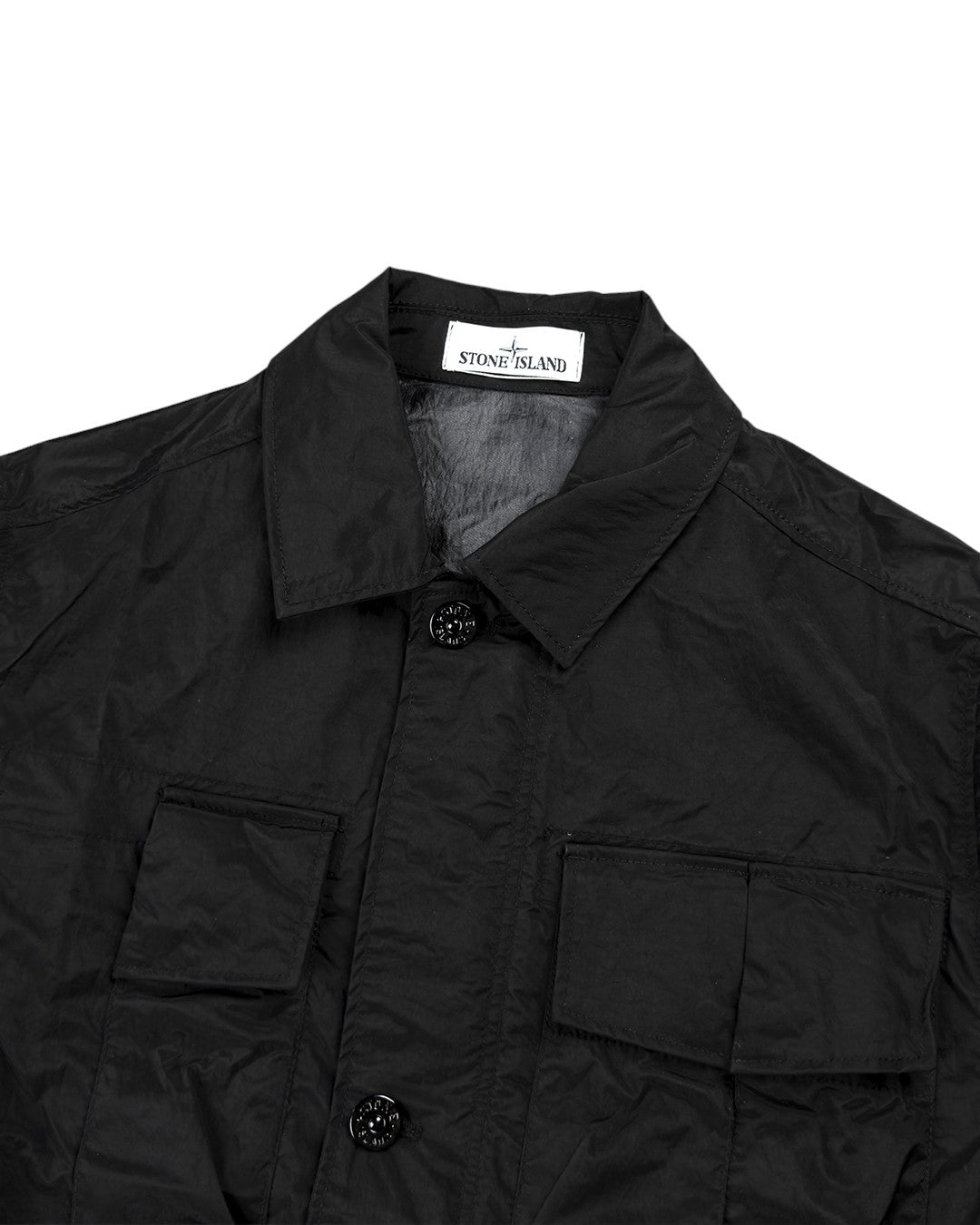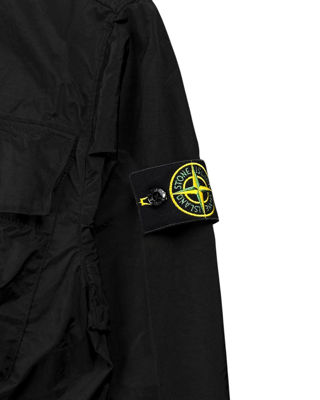 Нагрудна кишеня з сильфона, розділена на дві секції з лівого боку, кожна з клапаном та потайною застібкою. Одна вузька нагрудна кишеня на липучці, кишені з клапаном та застібкою на кнопки. Бейдж Stone Island на лівому рукаві. Еластичні манжети. Потайна двостороння застібка на блискавку та ґудзики.