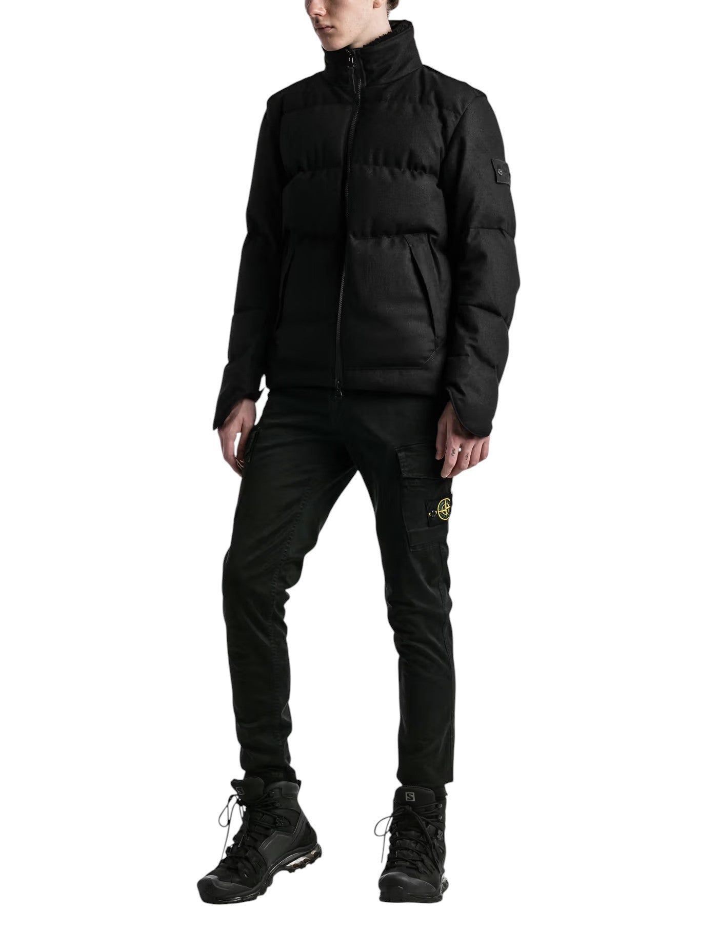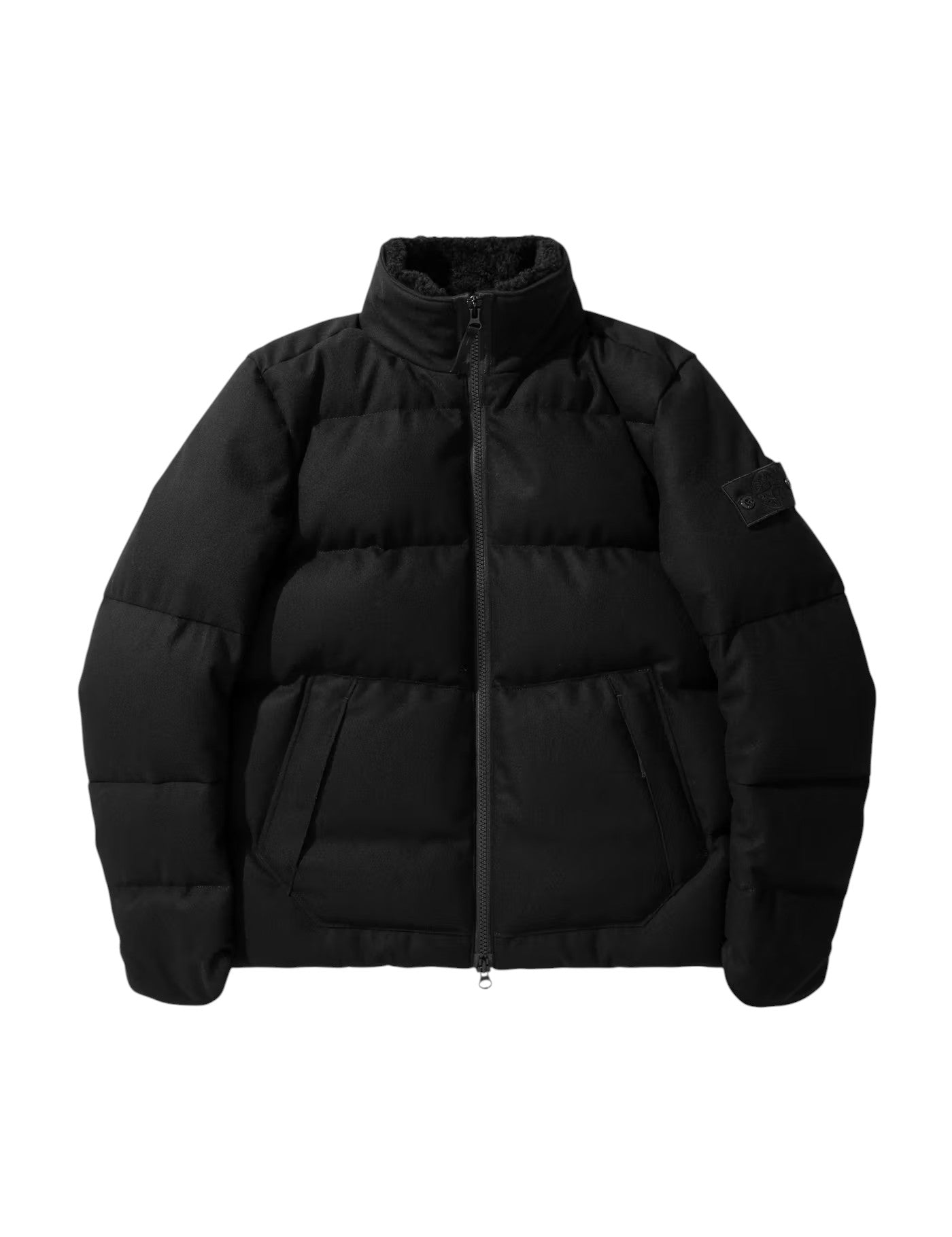 Stone Island 440F1 Ghost Real Down Jacket — це високотехнологічна куртка, виконана в мінімалістичній естетиці лінії Ghost. Модель виготовлена з тканини з покриттям, що забезпечує захист від зовнішніх впливів і водночас зберігає еластичність. Куртка оснащена двосторонньою застібкою-блискавкою, коміром-стійкою з внутрішньою знімною підкладкою з овчини для додаткового комфорту та тепла. Спереду розміщені дві бічні кишені на блискавках, а на рукаві — фірмова знімна нашивка з логотипом Stone Island, виконана в тон виробу. Наповнення з високоякісного пуху гарантує легкість і відмінну термоізоляцію, роблячи модель ідеальною для холодного сезону.