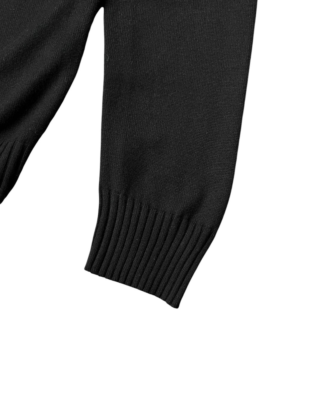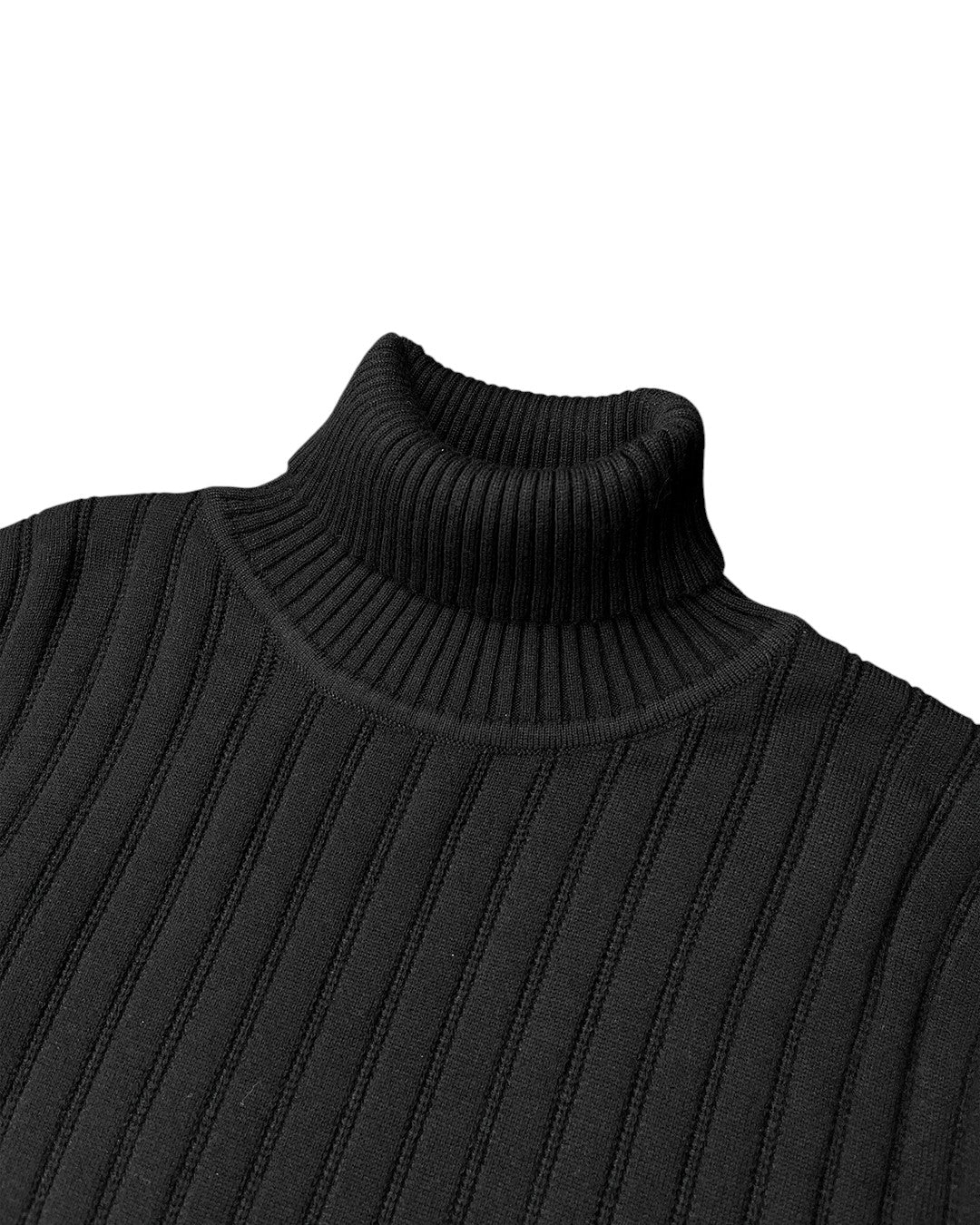Светр із високим коміром із вовни Джилонг. Ребристий комір. Ребристий мотив за допомогою різних технік шиття на верхній частині переду, рукавах і спині. Гладка тканина на нижній частині переду і нижній частині рукавів. Ребристі манжети і нижня смуга.