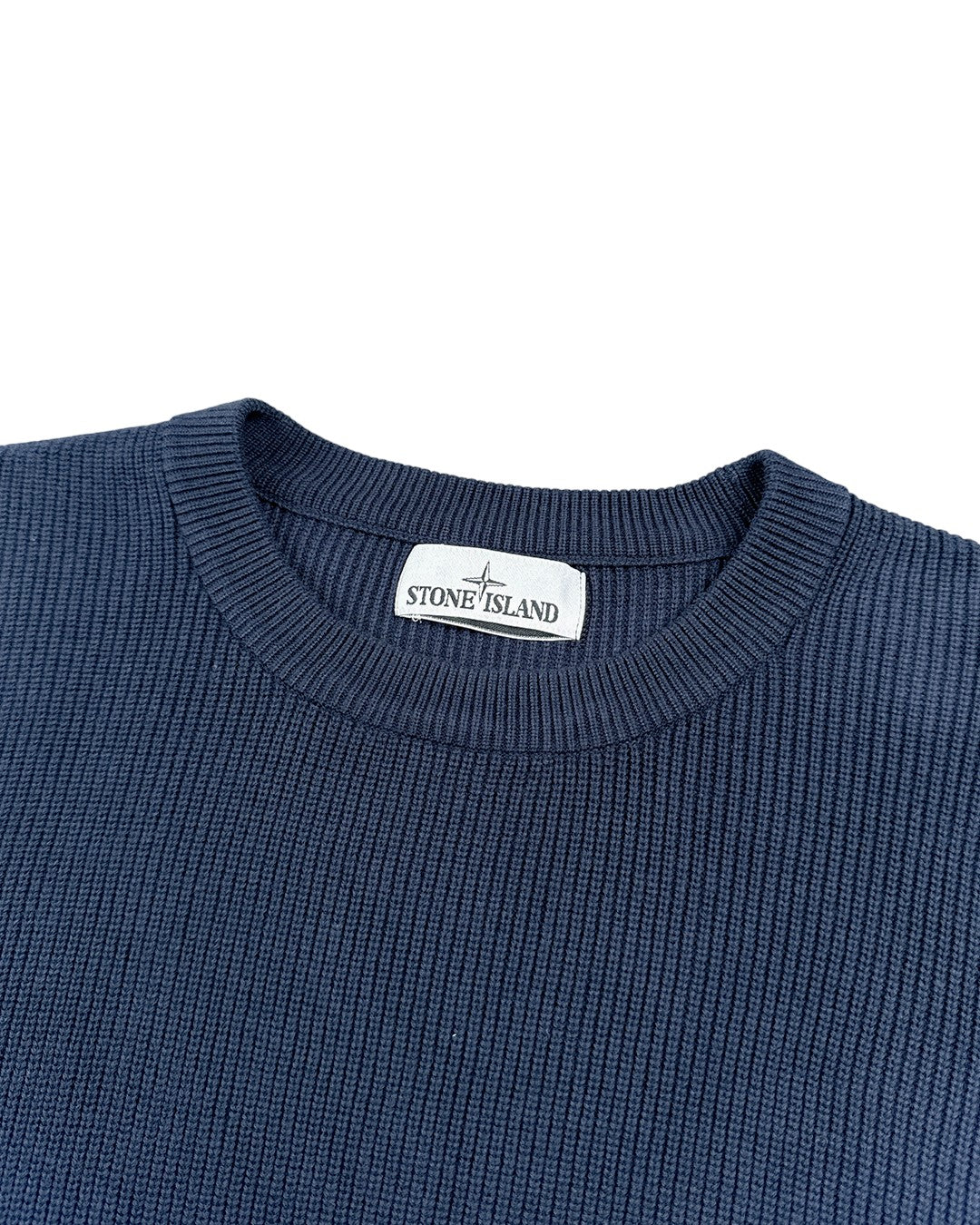 Светр від Stone Island виготовлений з ребристого м'якого бавовняного трикотажу. Ребристий виріз горловини, манжети та нижній пояс. Значок Stone Island на лівому рукаві.