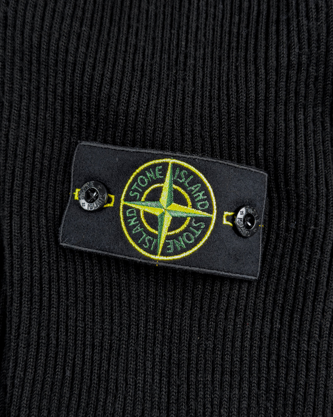 Светр з вовни в рубчик. 12 калібр. Регулярний крій. Значок Stone Island на лівому рукаві. Горизонтальний мотив у смужку над манжетами. Манжети та поділ з тонкими ребрами.