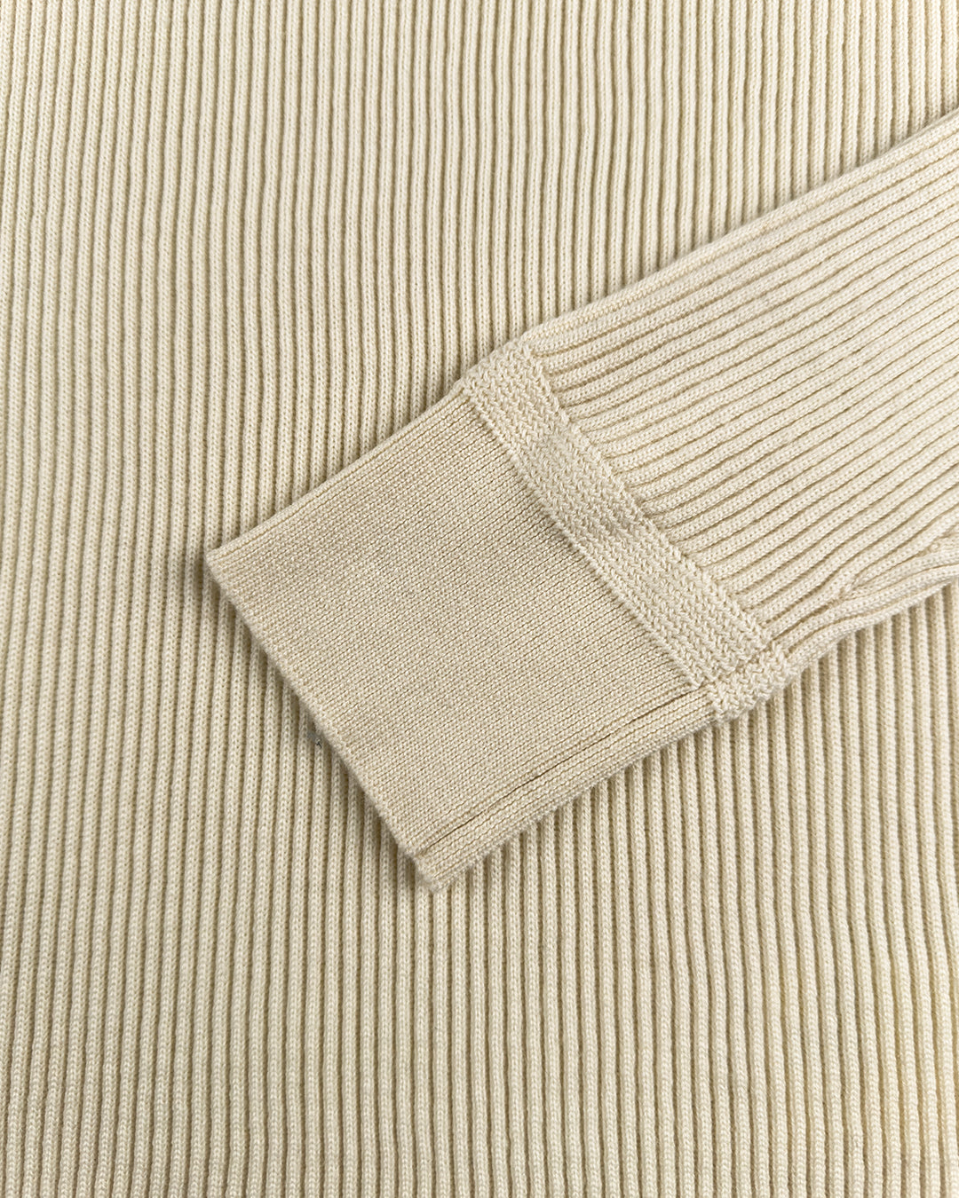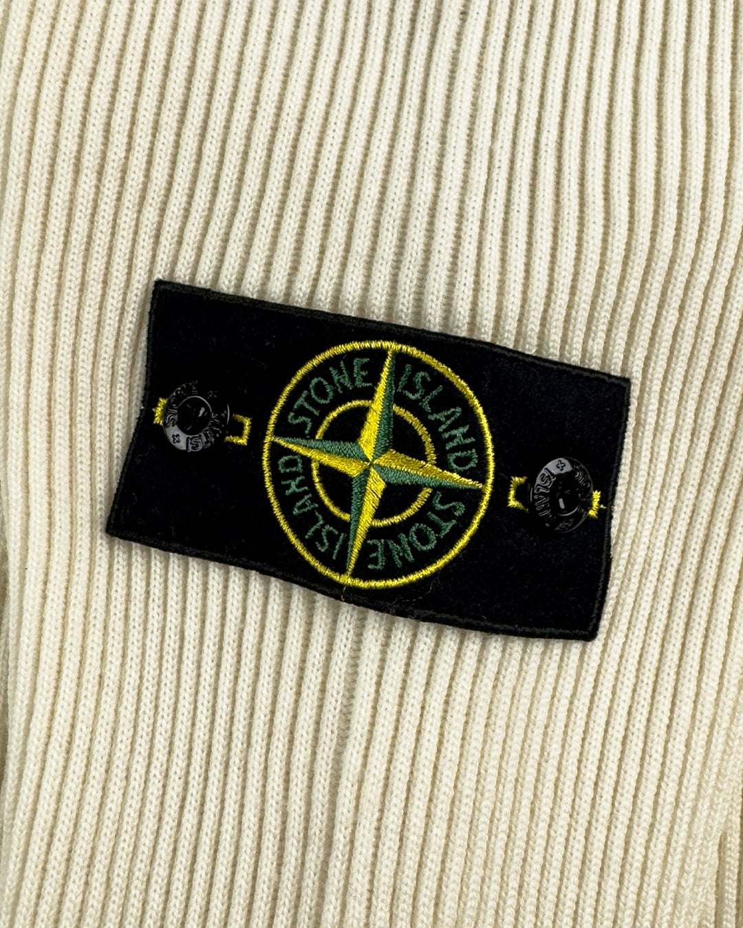 Светр з вовни в рубчик. 12 калібр. Регулярний крій. Значок Stone Island на лівому рукаві. Горизонтальний мотив у смужку над манжетами. Манжети та поділ з тонкими ребрами.