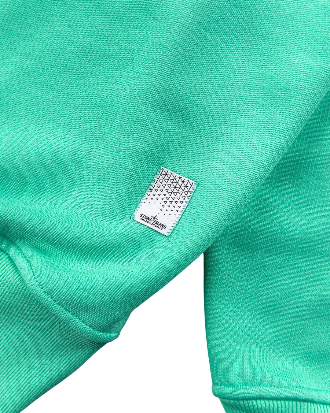 Худі з капюшоном з бавовняного флісу. Виріб пофарбований, має широкий крій. Капюшон з внутрішнім бавовняним кантом, в якому знаходиться шнурок. Рукава реглан, з рельєфним швом. Напівприхований значок Stone Island Shadow на лівому рукаві, абстрактна сезонна вишивка "Shadow" ззаду. Манжети та нижній пояс на резинці.