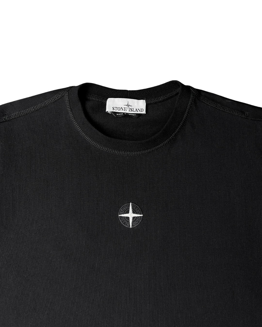 Футболка з коротким рукавом з бавовняного джерсі. Виріб пофарбований в готовому вигляді. Ребриста горловина. Двотонна вишивка компаса Stone Island на грудях.