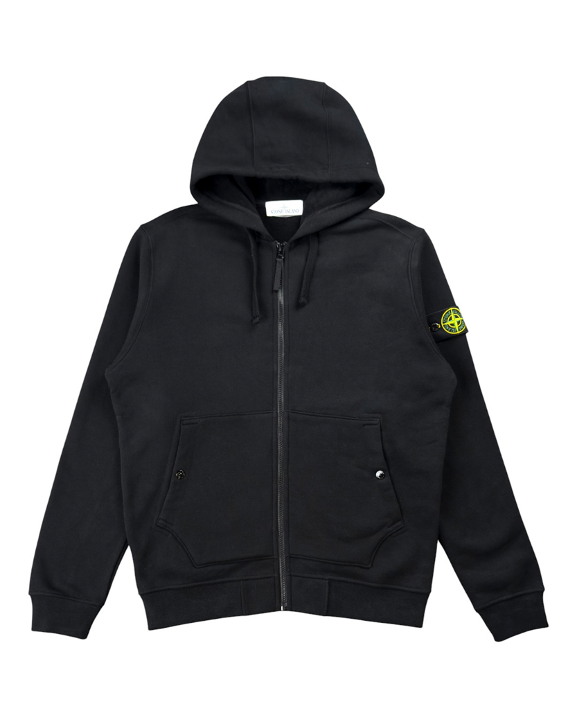 Худі з капюшоном на блискавці з ворсистого бавовняного флісу. Виріб пофарбований. Регулярний крій. Капюшон з контурним шнурком. Накладні кишені на кнопках. Значок Stone Island на лівому рукаві. Ребристі манжети і нижній пояс. Застібка на блискавку.