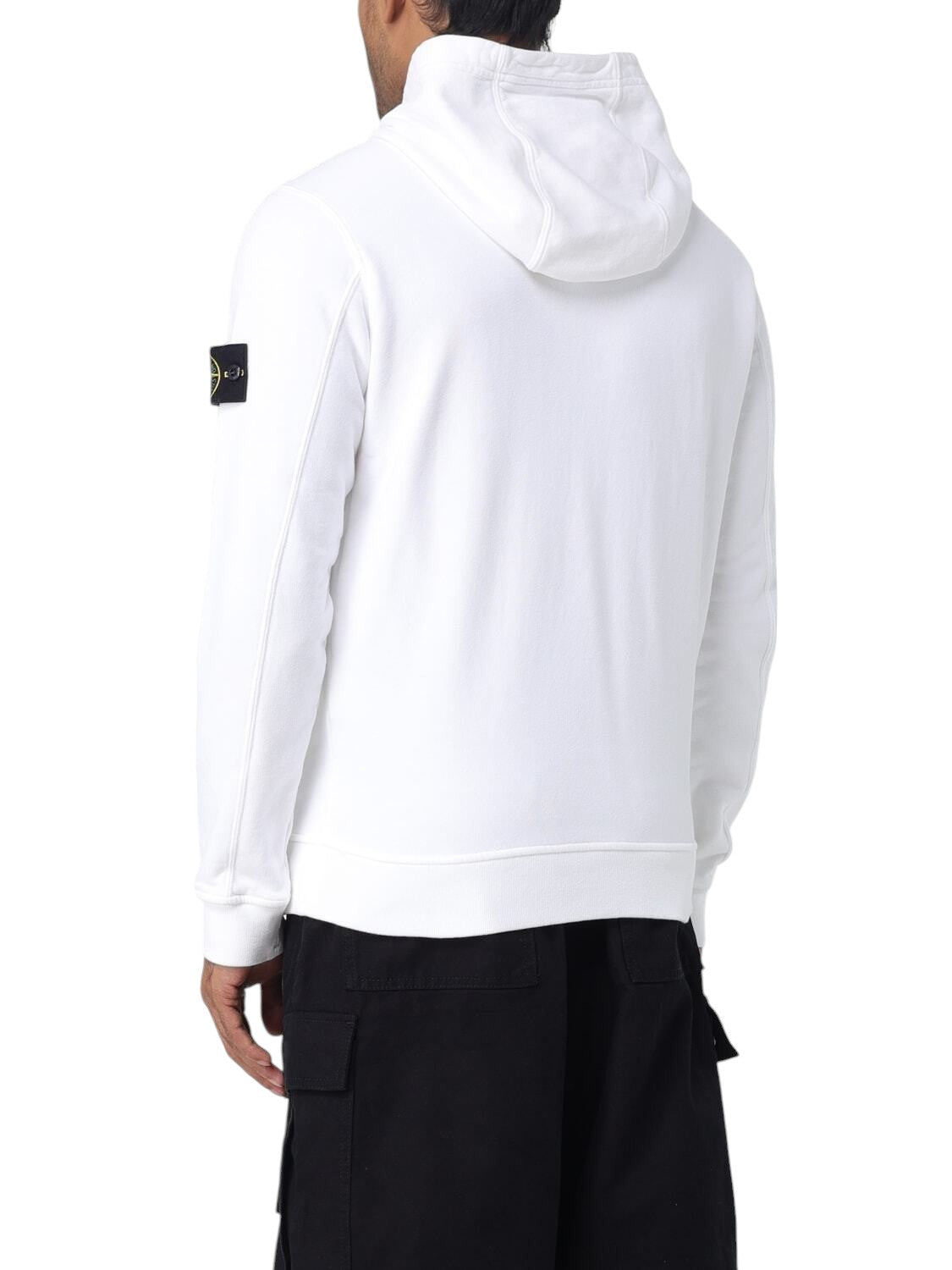 Худі з капюшоном з ворсистого бавовняного флісу. Виріб пофарбований, регулярний крій, ребристі манжети та нижній пояс, капюшон з двома кнопками, кишеня-кенгуру на кнопках. Значок Stone Island на лівому рукаві.