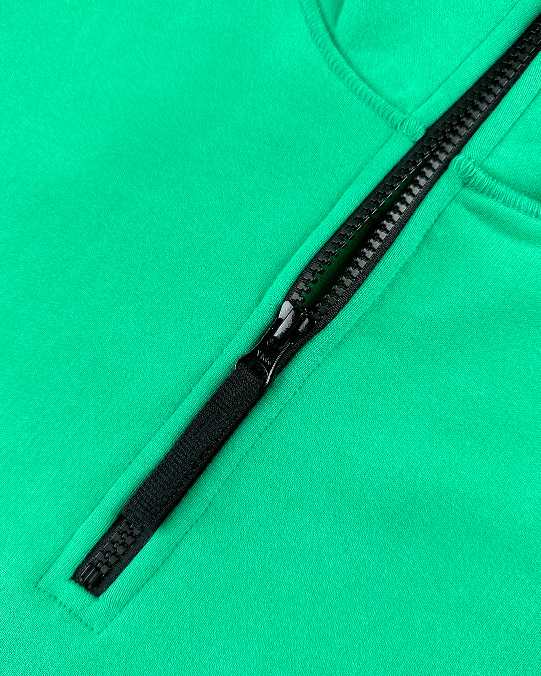 Світшот напівзамковий з хлопкового флісу . Одяг окрашений в готовому вигляді. Воротник-стійка з внутрішньою тонкою резинкою. Застібка-блискавка. Прострочені шви. Ребристі манжети та нижня резинка. Підкладка з закругленою строчкою під вирізом горловини на спині.