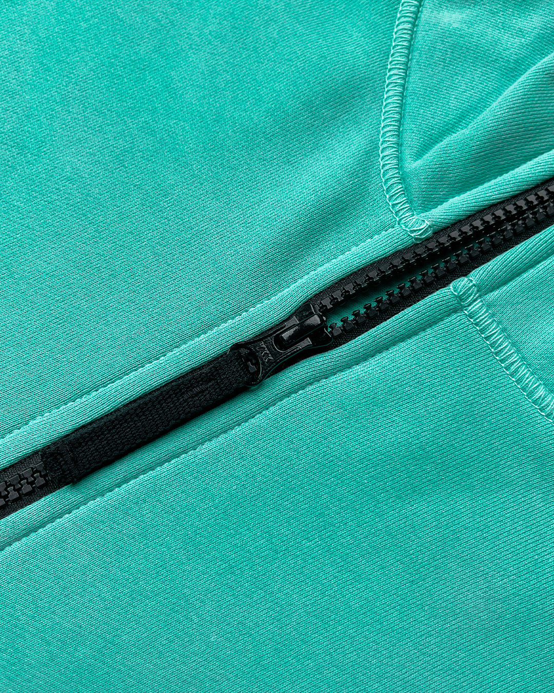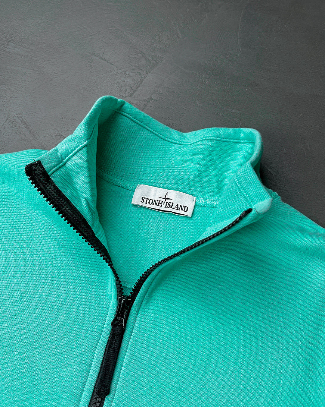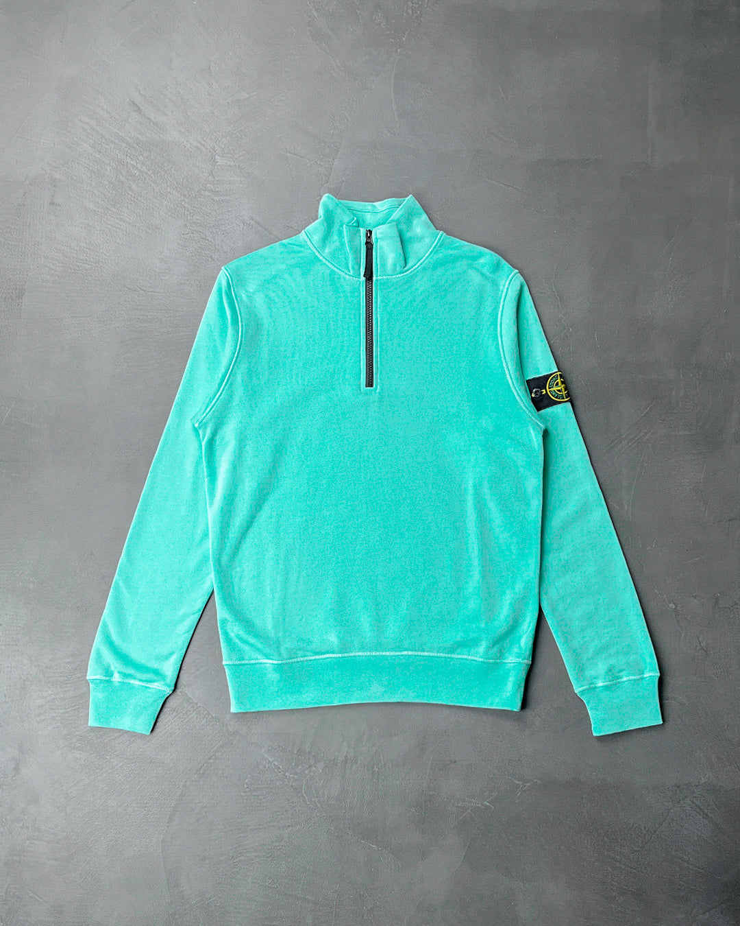 Ця толстовка напівзамкова з хлопкового флісу з начосом. Одяг окрашений в готовому вигляді. Воротник-стійка з внутрішньою тонкою резинкою. Застібка-блискавка. Прострочені шви. Ребристі манжети та нижня резинка. Самопідкладка з закругленою строчкою під вирізом горловини на спині.