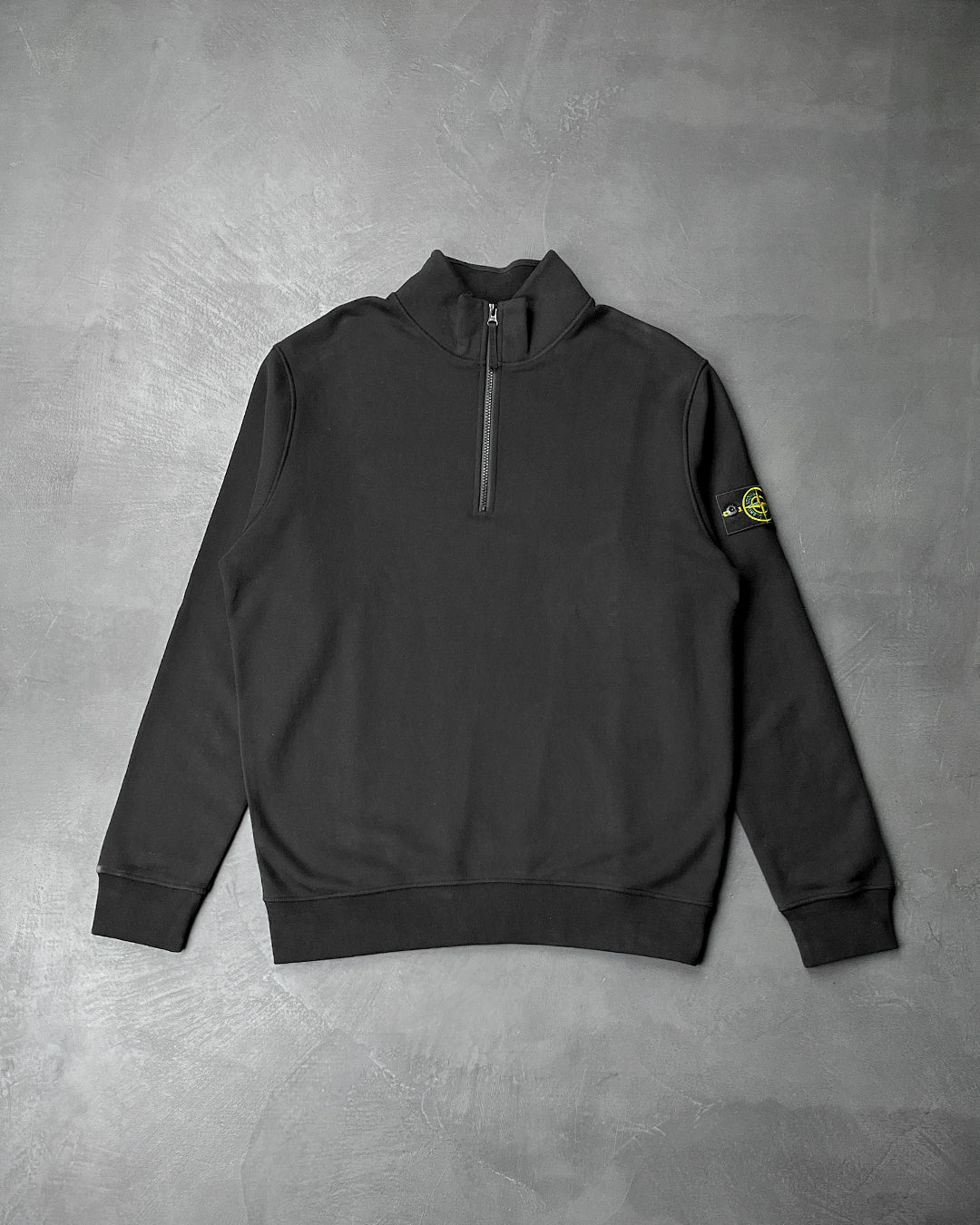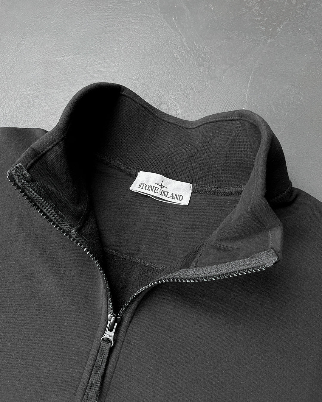 Ця толстовка напівзамкова з хлопкового флісу з начосом. Одяг окрашений в готовому вигляді. Воротник-стійка з внутрішньою тонкою резинкою. Застібка-блискавка. Прострочені шви. Ребристі манжети та нижня резинка. Самопідкладка з закругленою строчкою під вирізом горловини на спині.