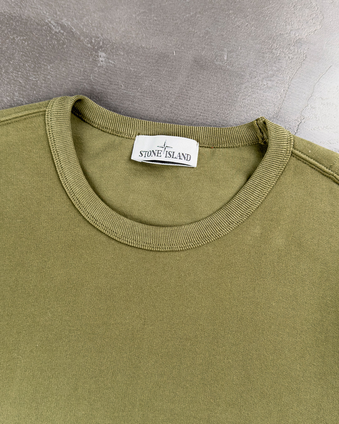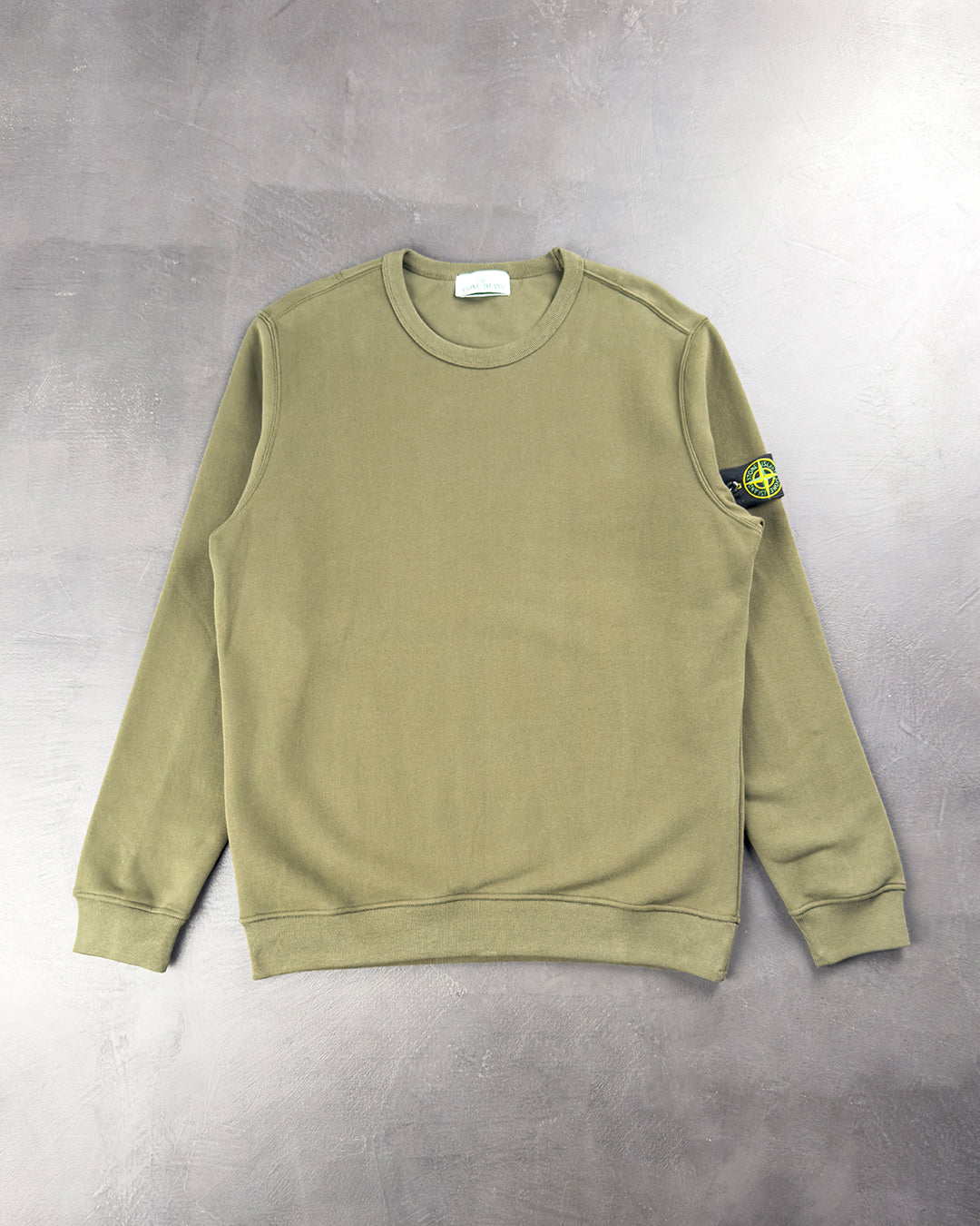 Світшот з матового бавовняного флісу з круглою ребристою горловиною. Виріб пофарбований. Регулярний крій. Значок Stone Island на лівому рукаві. Люнет з внутрішньою підкладкою на спині, під вирізом горловини. Манжети та нижній пояс на резинці.