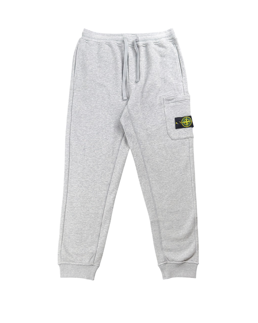Спортивні штани з матового бавовняного флісу. Виріб пофарбований. Регулярний крій. Кишені для рук по шву. Одна задня кишеня з потайною застібкою-кнопкою. На лівій штанині - карго-кишеня з логотипом Stone Island. Ребристі манжети на штанинах. Пояс на еластичній резинці, зі шнурком.