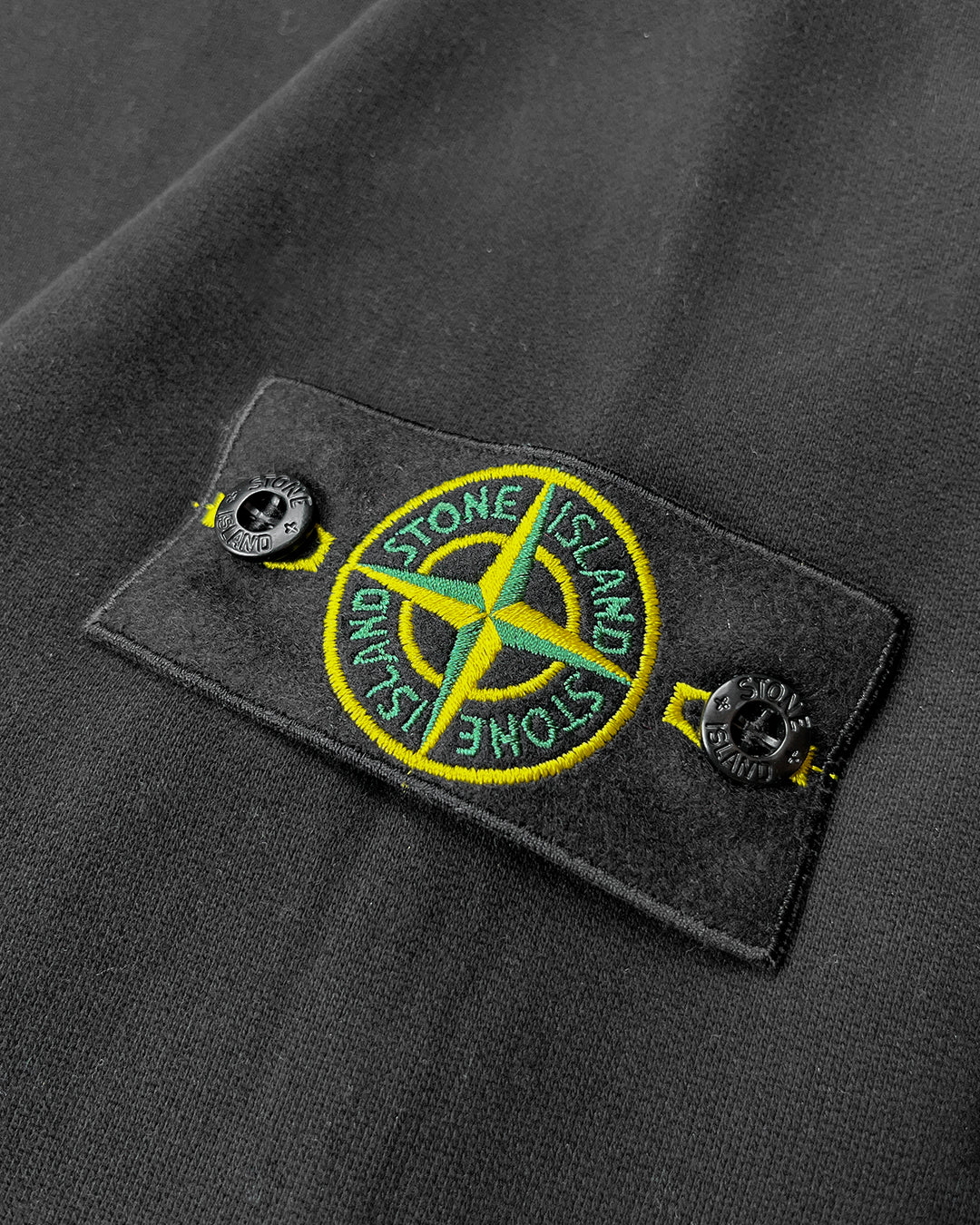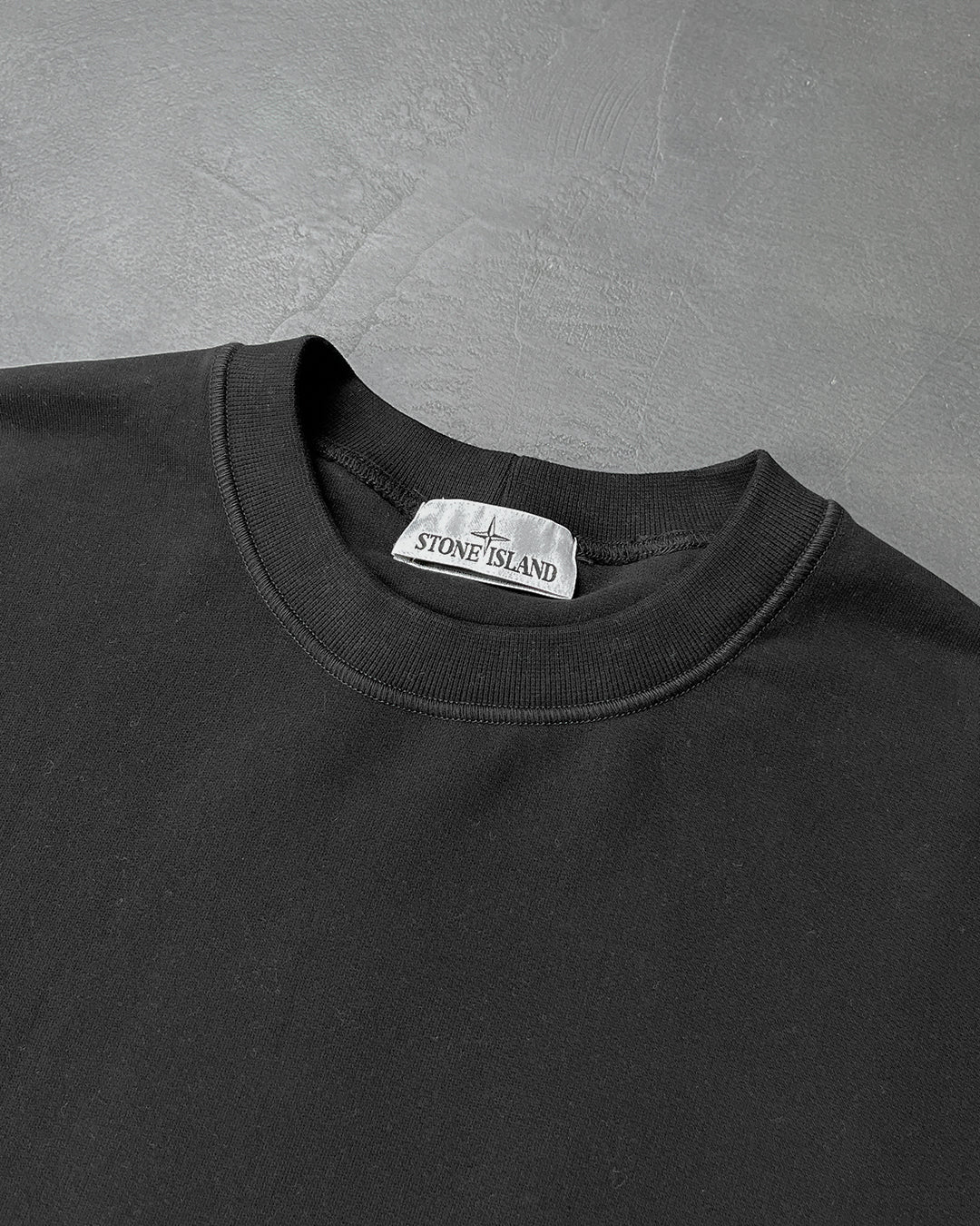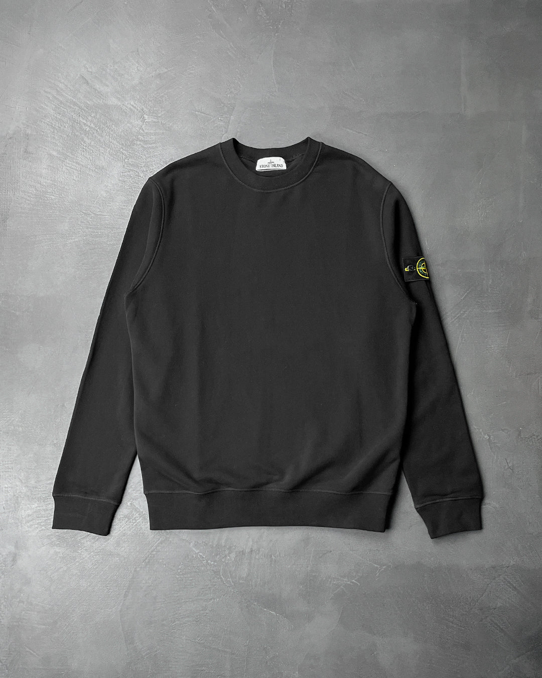 Світшот чорного кольору з круглим вирізом з бавовняного флісу з начосом. Пофарбований в готовому вигляді. Ребристий виріз горловини, манжети і нижня полоса. На лівому рукаві розташований фірмовий патч.