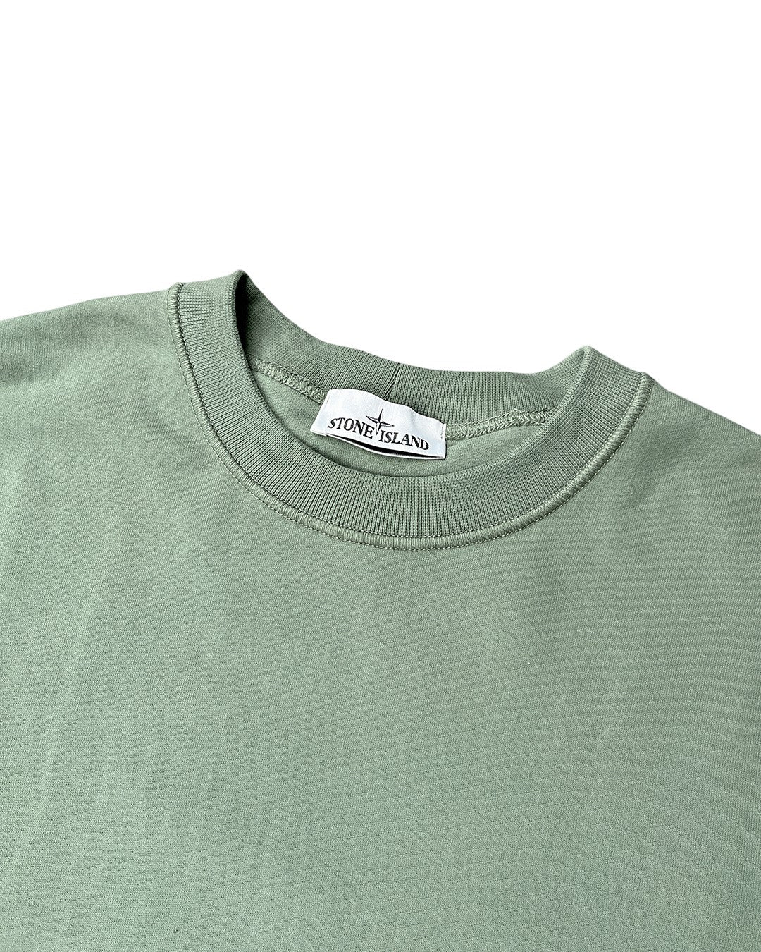Світшот кольору хакі з круглим вирізом з бавовняного флісу з начосом. Пофарбований в готовому вигляді. Ребристий виріз горловини, манжети і нижня полоса. На лівому рукаві розташований фірмовий патч.