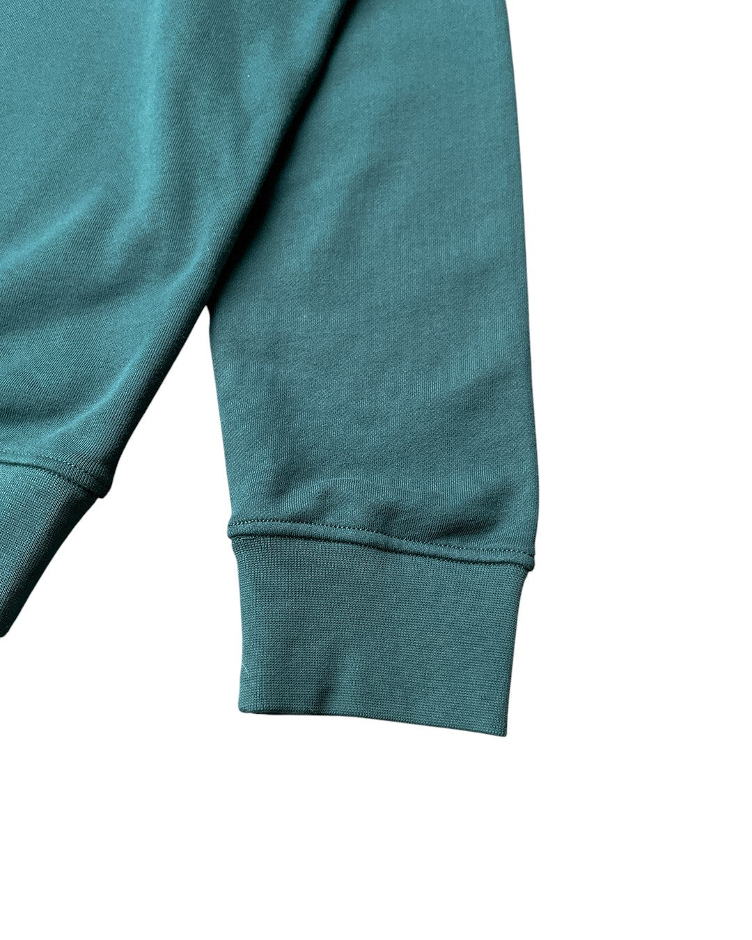 Світшот із круглим вирізом із мерсеризованого бавовняного флісу. Виріб пофарбовано в готовому вигляді. Горловина в резинку. Клиновидні вставки в гумку під рукавами. Манжети і низ в гумку.