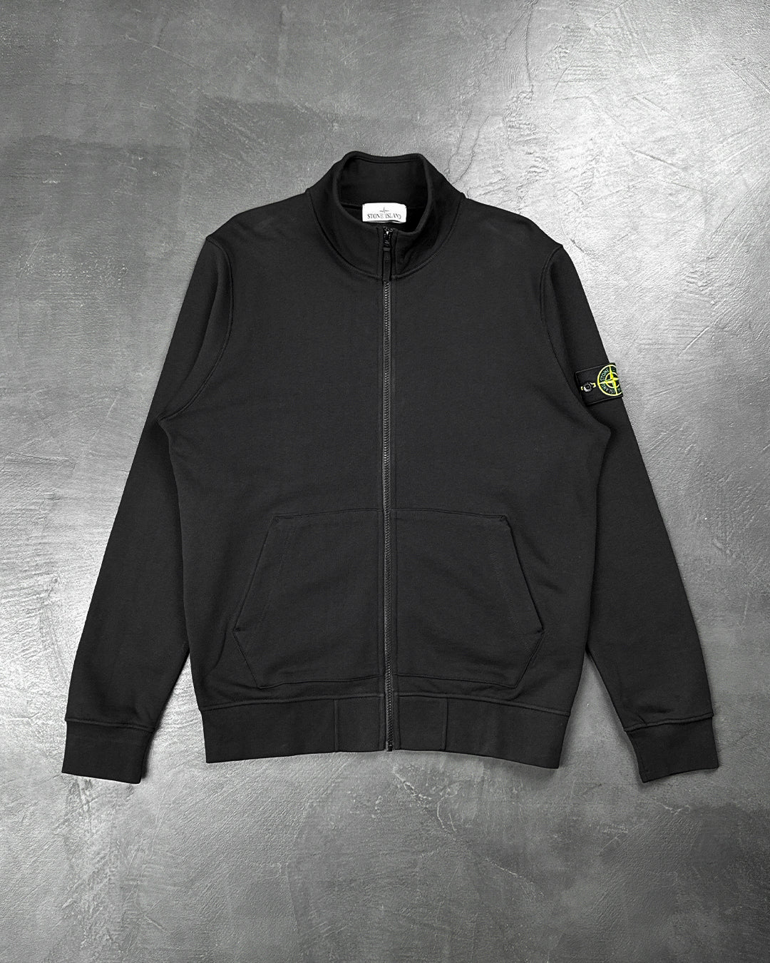 Спортивний світшот з бавовняного флісу. Виріб пофарбований. Комір-стійка з внутрішньою дрібною ребристістю. Кишені для рук з похилим входом. Значок Stone Island на лівому рукаві. Люнет з внутрішньою підкладкою на спині під вирізом. Ребристі манжети та нижній пояс. Двостороння застібка на блискавку.