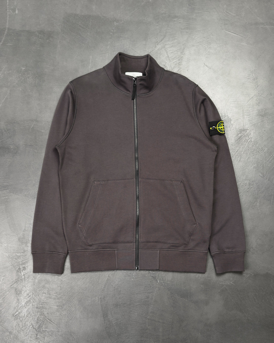 Спортивний світшот з бавовняного флісу. Виріб пофарбований. Комір-стійка з внутрішньою дрібною ребристістю. Кишені для рук з похилим входом. Значок Stone Island на лівому рукаві. Люнет з внутрішньою підкладкою на спині під вирізом. Ребристі манжети та нижній пояс. Двостороння застібка на блискавку.