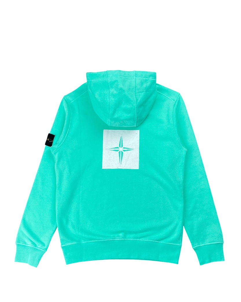 Худі з капюшоном з бавовняного флісу з принтом 'Stencil Sweatshirt' пофарбоване у готовому вигляді. Манжети та нижній пояс на резинці, капюшон з шнурком. Спереду трафаретний принт у вигляді зірки Stone Island. На спині зворотний "негативний" принт тієї ж трафаретної зірки.
