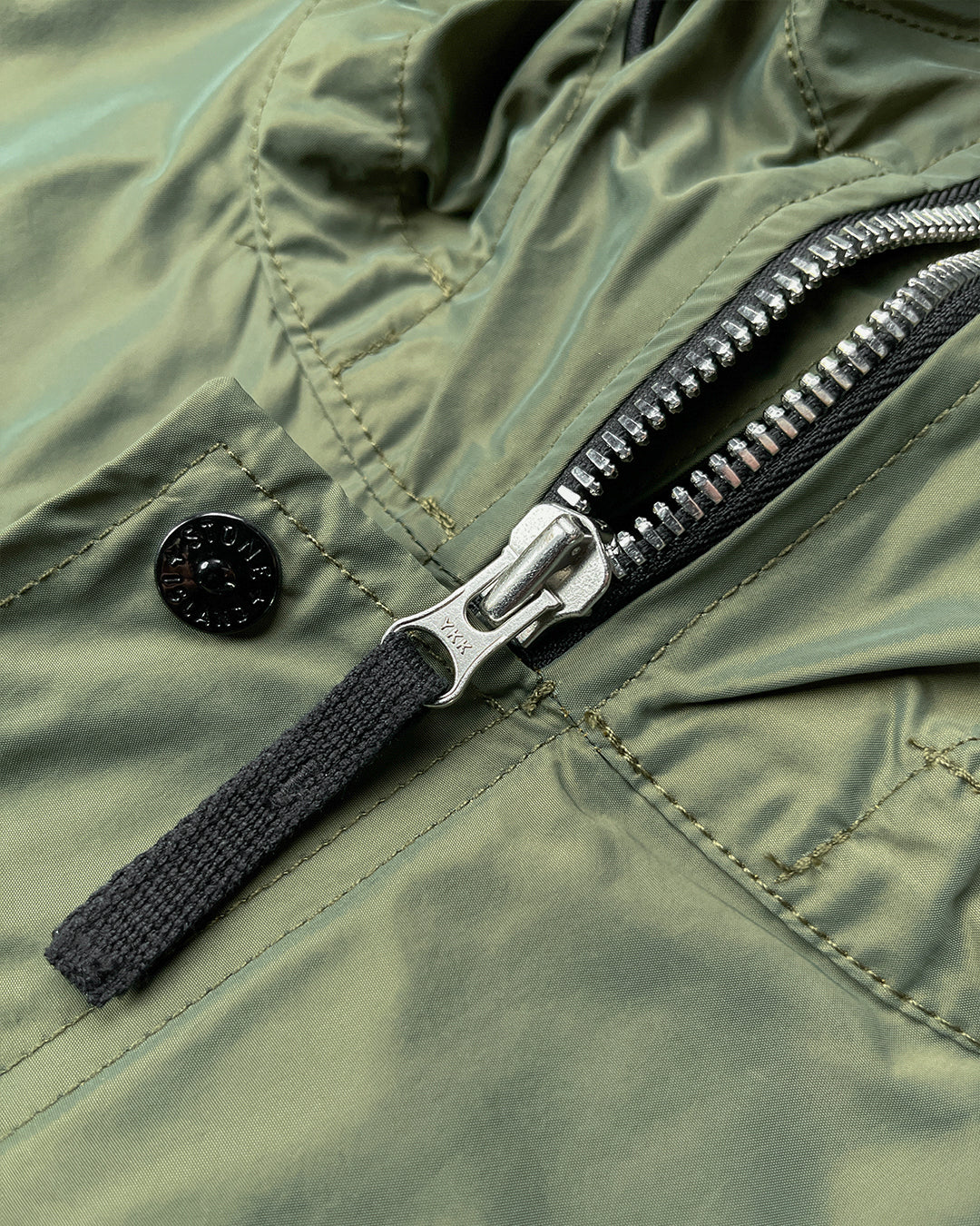 Парка виготовлена з мікрорепсу, поліестеру та нейлону в армійському стилі. Дрібні нитки меншого діаметра, порівняно з основними нитками, дають змогу щільніше ткати тканину, щоб отримати компактну вітронепроникну тканину.