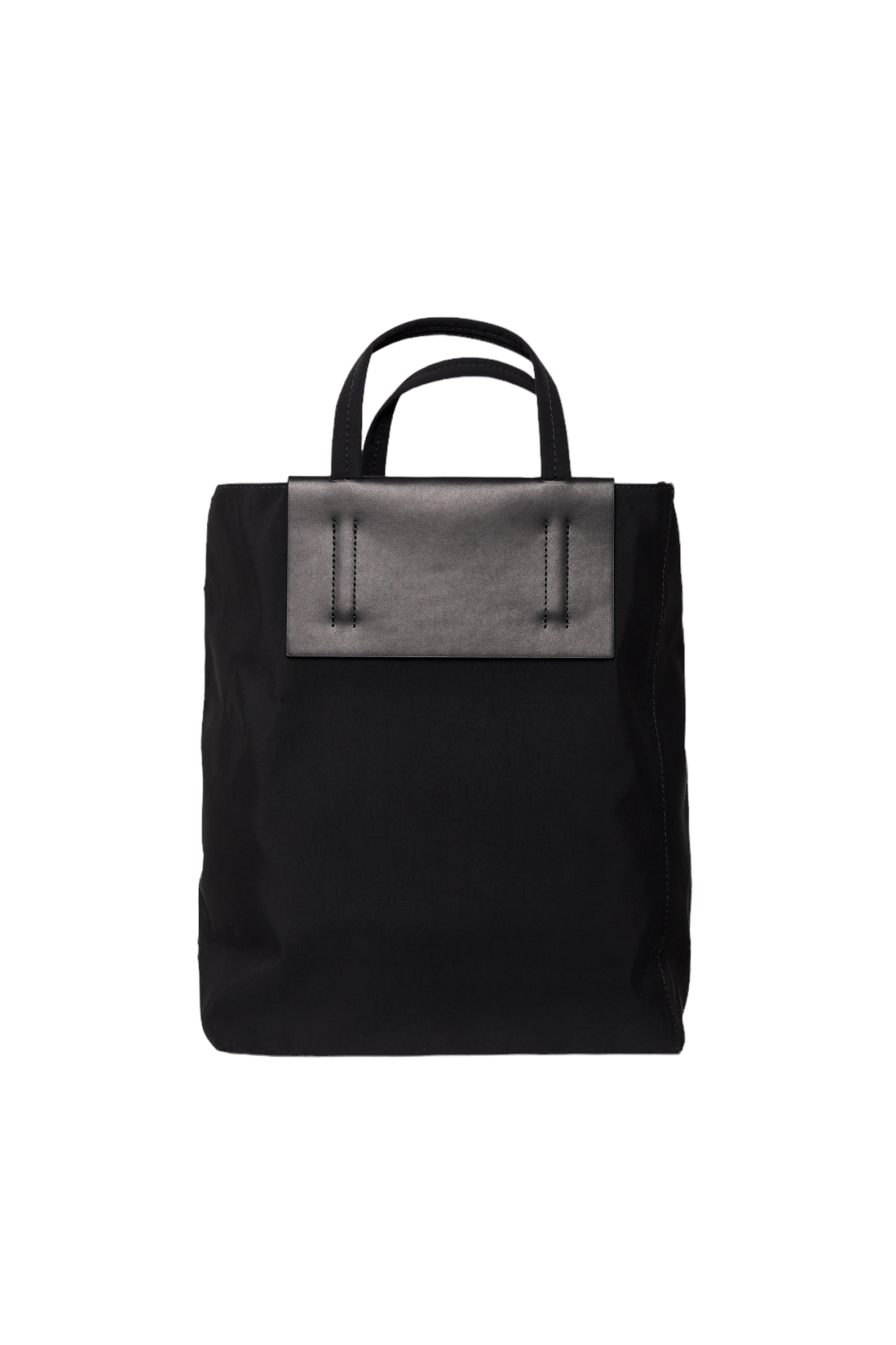 Розкішна версія класичної сумки-шоппера, виготовлена з міцного чорного полотна і тонованої натуральної шкіри. Містка та об'ємна, вона оснащена передньою кишенею на блискавці для цінних речей та підписана мінімалістичним брендуванням білими літерами. Носіть її в руці або через плече завдяки міцним ручкам та регульованому ремінцю.