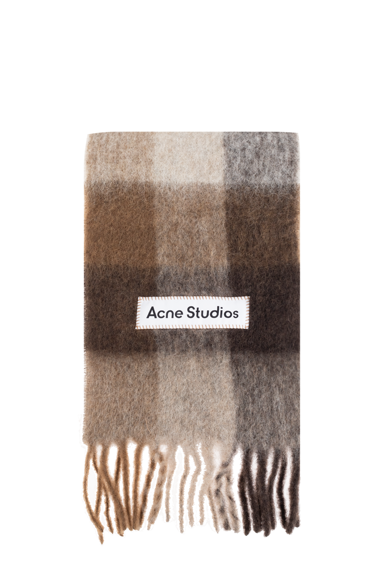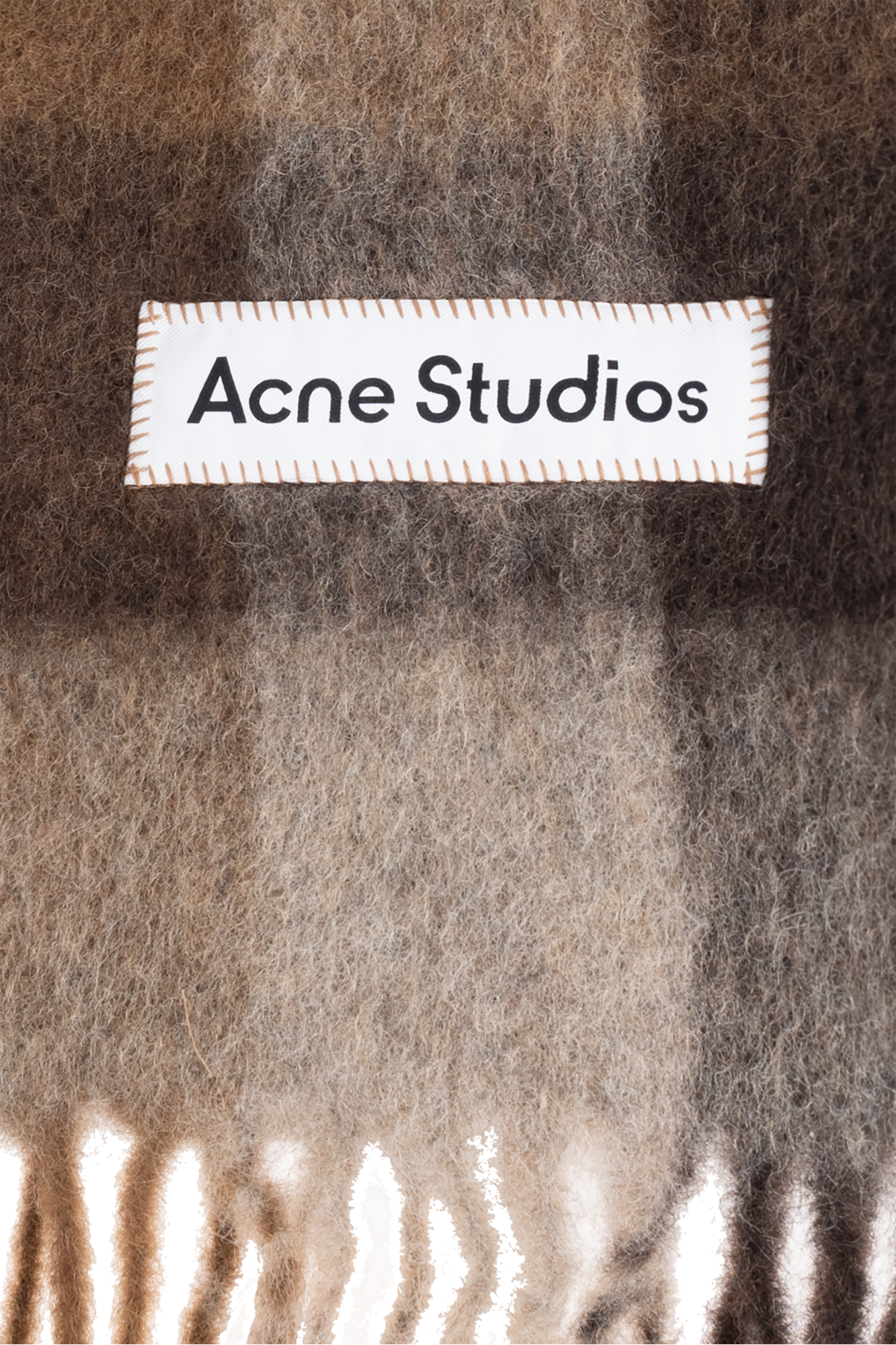 Acne Studios Checked Wool Fringe Scarf Dark Brown/White/Brown