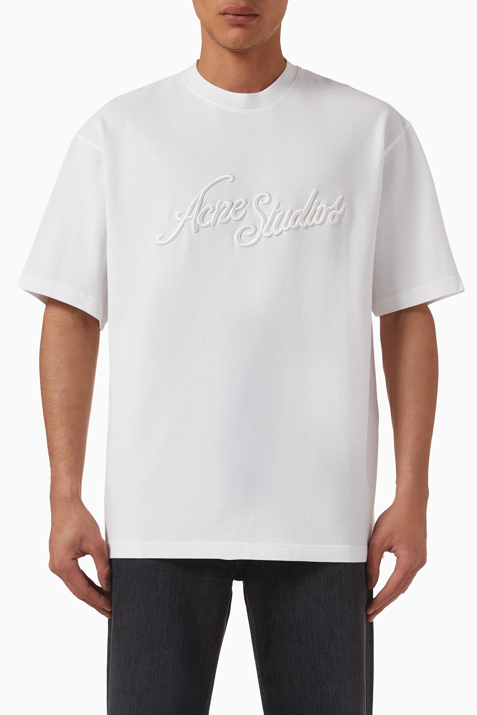 Футболка унісекс вільного крою з класичним круглим вирізом горловини, доповнена 3D-вишитим логотипом Acne Studios. Виготовлена з бавовни з вінтажним напиленням, що надає виробу унікального вигляду.