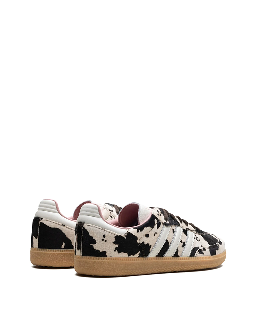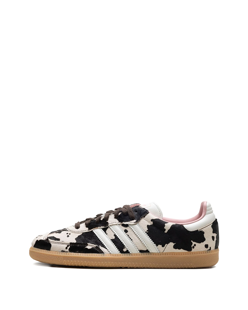 Ці привабливі кросівки мають унікальний принт у вигляді коров'ячої шкіри на верхній частині, що поєднує темно-коричневі та біло-кремові відтінки для сміливого, модного вигляду. Культова підошва Gum 3 забезпечує чудове зчеплення та довговічність, залишаючись вірною безсмертній естетиці Samba. Samba OG Cow Print без зусиль поєднує комфорт і стиль. М'яка шкіряна верхня частина забезпечує преміальне відчуття і чудову підтримку, а м'яка устілка гарантує комфорт протягом усього дня. Фірмове T-подібне накладення на носку і зубчасті 3 смужки зберігають класичну привабливість взуття, роблячи його універсальним варіантом як для повсякденного носіння, так і для яскравих образів.