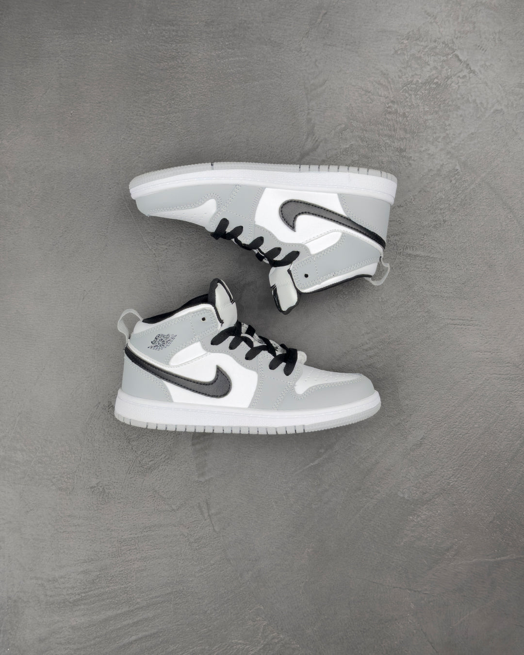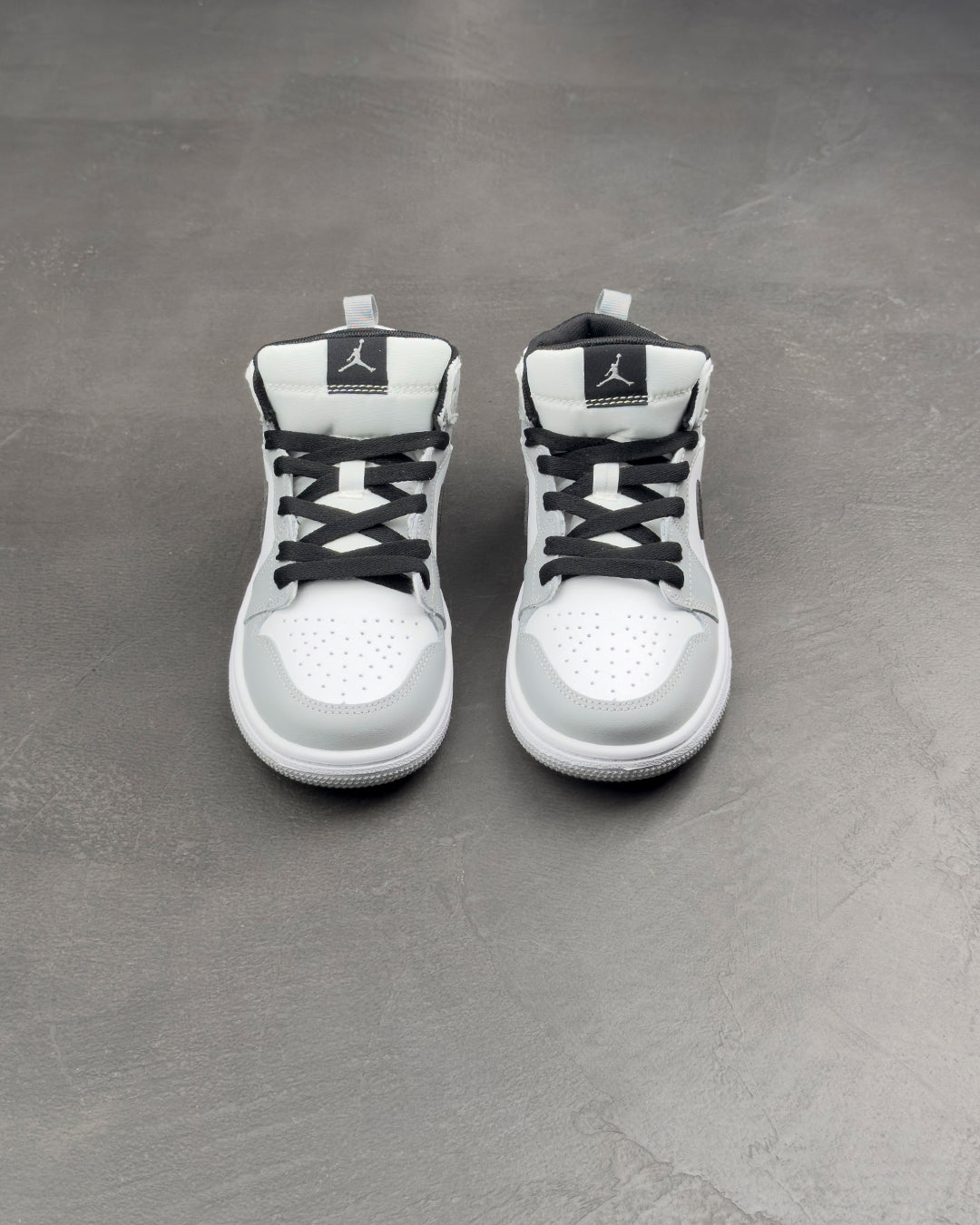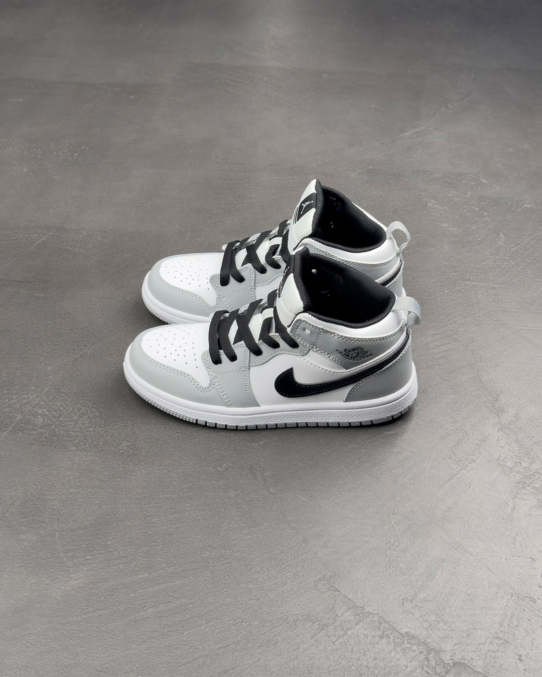 Дитячі кросівки Air Jordan 1 Mid PS 'Light Smoke Grey' виготовлені з високоякісної шкіри і мають світло-димчастий та білий колір з чорними акцентами, що включають шнурки та брендинг - знакові крила, "Swooshes" та етикетку на язичку. Підошва оснащена фірмовою інкапсульованою амортизацією Air.