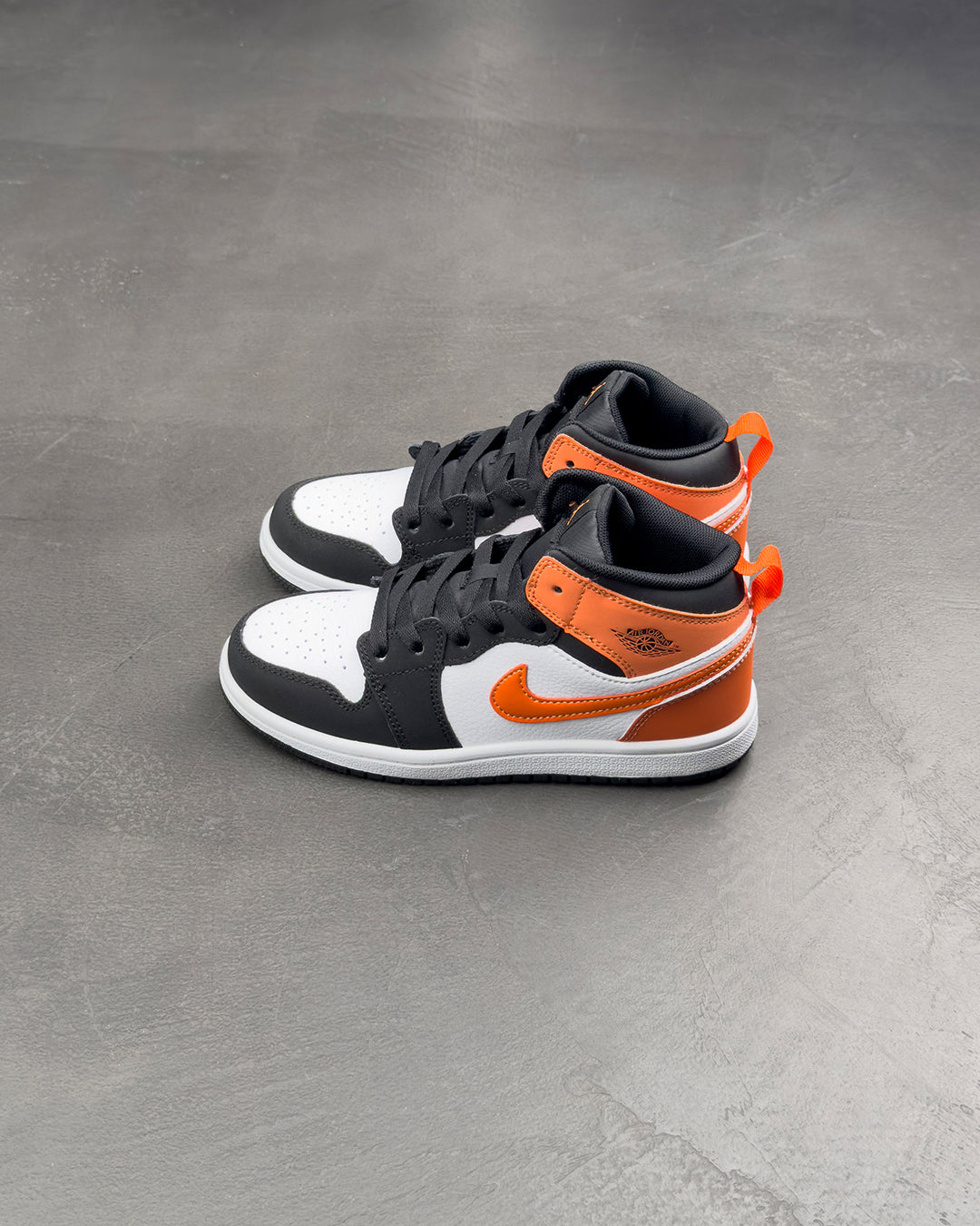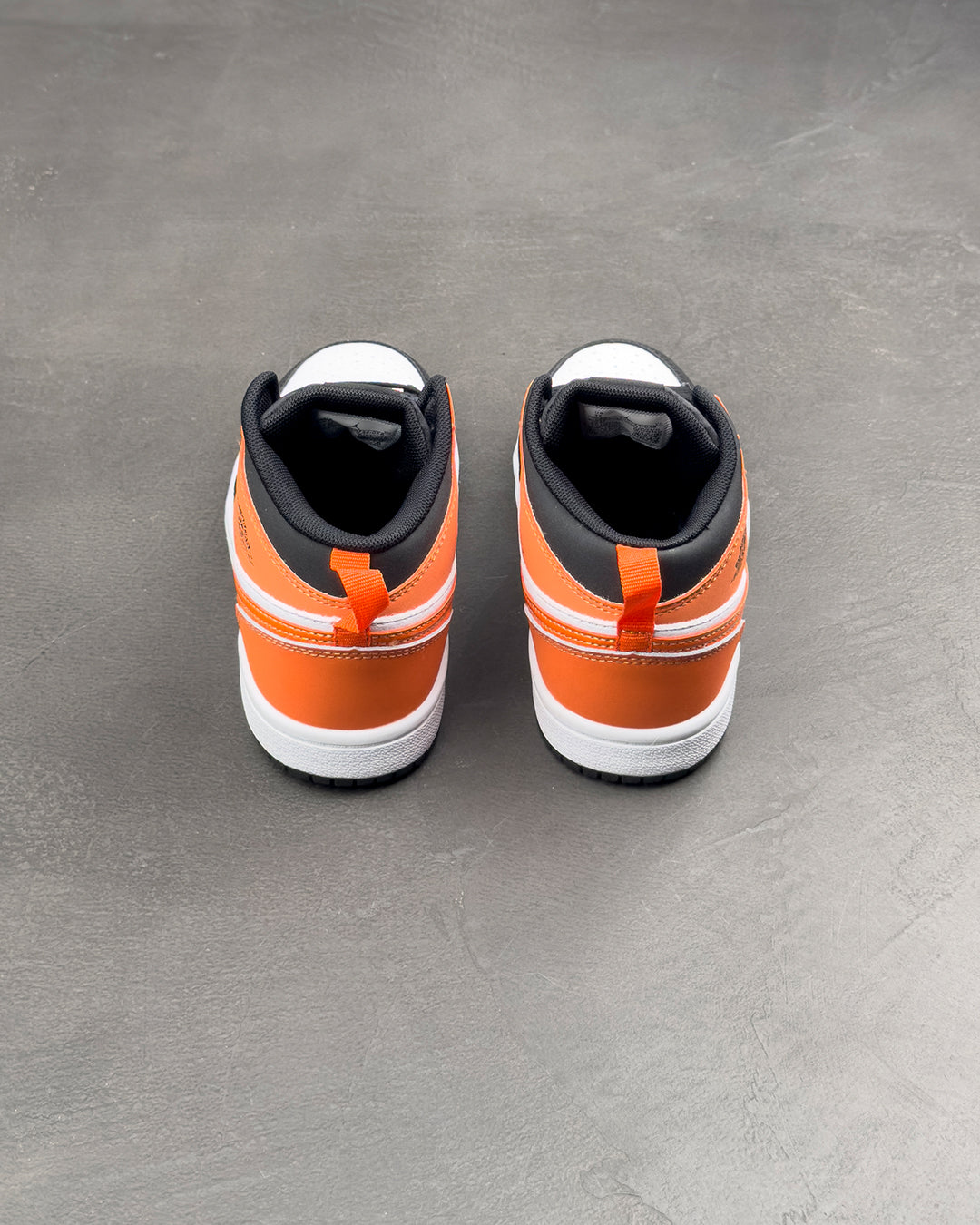 Air Jordan 1 Mid PS 'Shattered Backboard' - це стильні та зручні кросівки, які ідеально підходять для дітей. Модель виконана в чорно-помаранчевому кольорі, який натхненний культовим кольором Shattered Backboard. Верх виготовлений з високоякісної шкіри, яка забезпечує довговічність та преміум-відчуття. Проміжна підошва виготовлена з легкої піни, яка забезпечує амортизацію та підтримку. Підошва виготовлена з гуми, яка забезпечує зчеплення з поверхнею та довговічність.