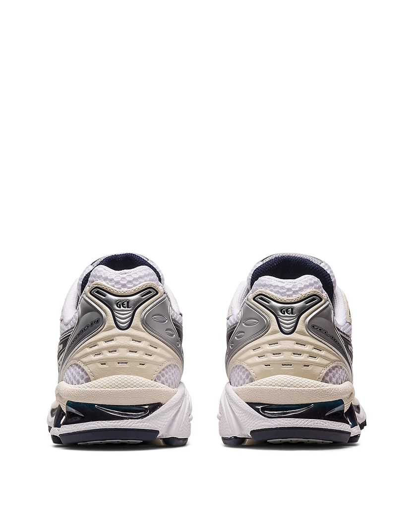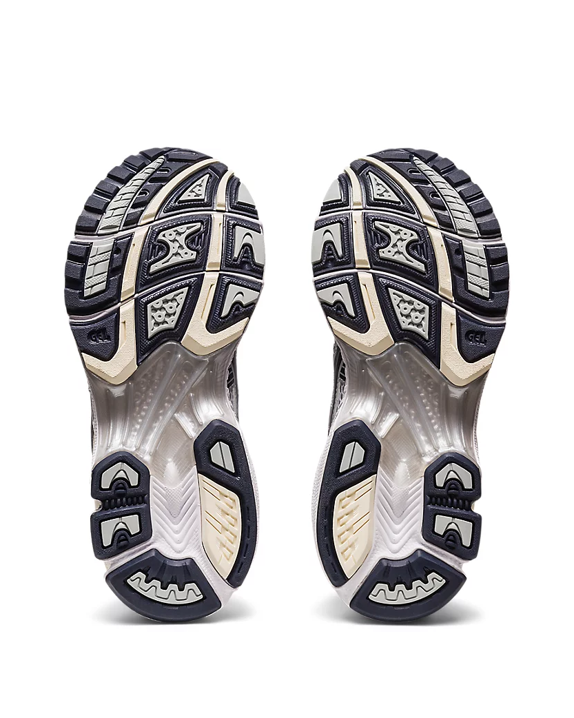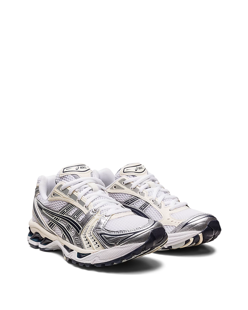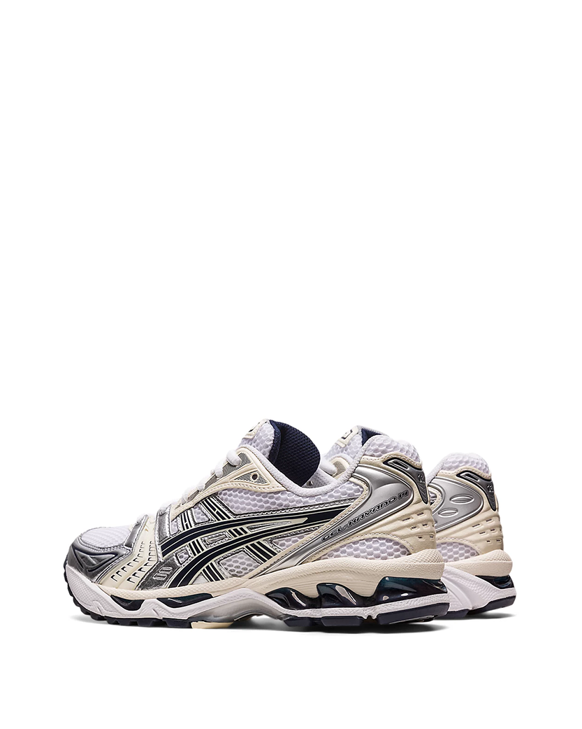 Передаючи нове сприйняття ретро-бігової форми, кросівки GEL-KAYANO 14 повертаються з естетикою кінця 2000-х років, як кивок на нашу легендарну серію GEL-KAYANO. Ця версія кросівок з оновленими матеріалами та компонентами стала першою ітерацією в лінійці кросівок, розробленою не Тошікадзу Каяно, а кимось іншим, хто займався їхнім дизайном. Ця передача естафети також відродила фірмові цінності франшизи, водночас зробивши крок уперед у розвитку її продуктивності. Віддзеркалюючи оригінальну проміжну підошву з амортизацією за технологією GEL, це взуття також покращує посадку верху, зберігаючи при цьому багатошарову конструкцію зі шкіри та сітки, яка була розроблена у 2008 році. Крім того, устілка виробляється із застосуванням процесу фарбування розчином, який зменшує використання води на 33% та викиди вуглекислого газу приблизно на 45%.