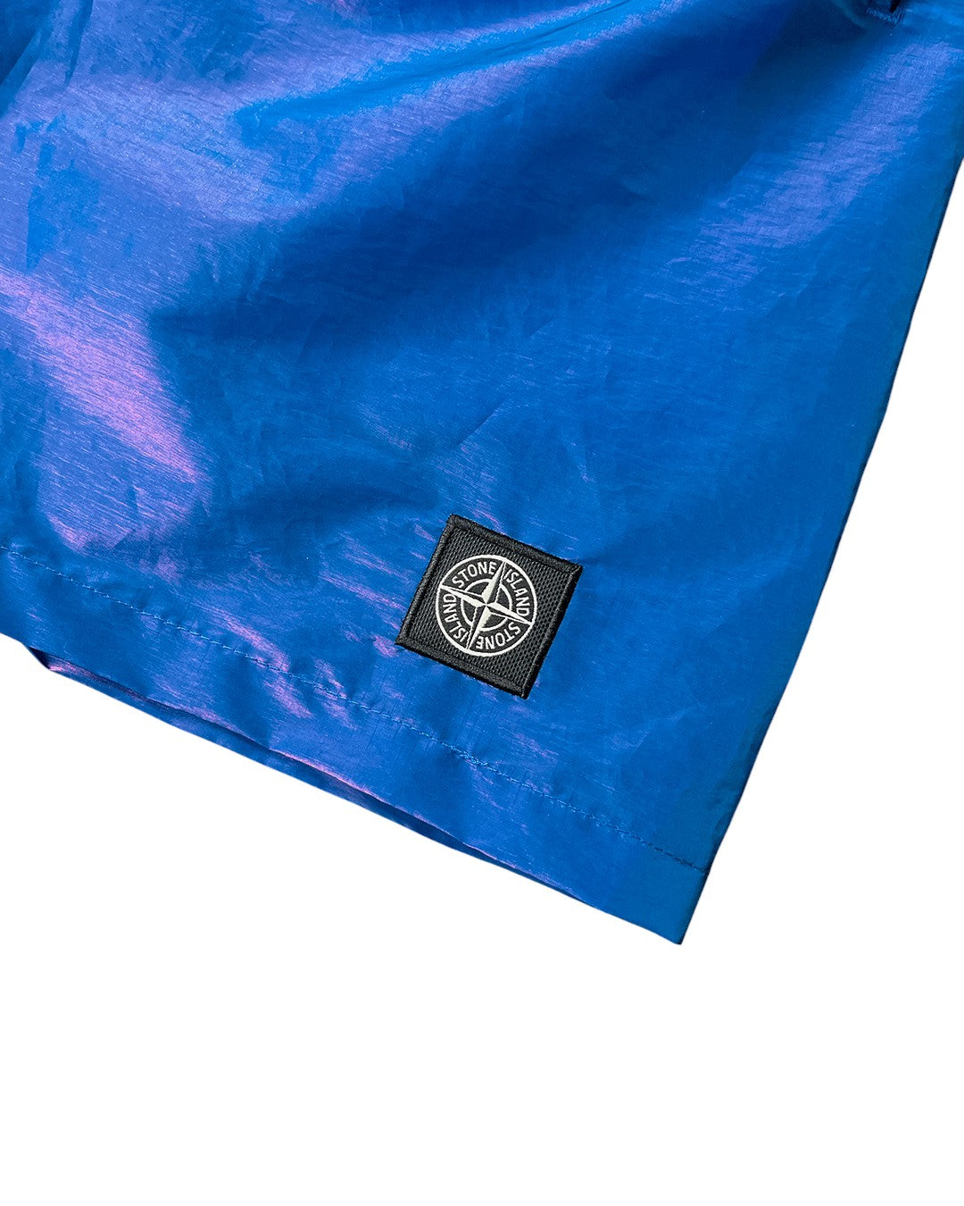 Шорти виготовлені з тканини Nylon Metal. Металізований, переливчастий ефект Nylon Metal є однією з найбільш універсальних тканин, розроблених лабораторією STONE ISLAND, і доповнюється різнокольоровими відтінками завдяки фарбуванню ниток. Готовий виріб пройшов двоступінчасту процедуру фарбування, що підкреслює переливи кольорів моделі.