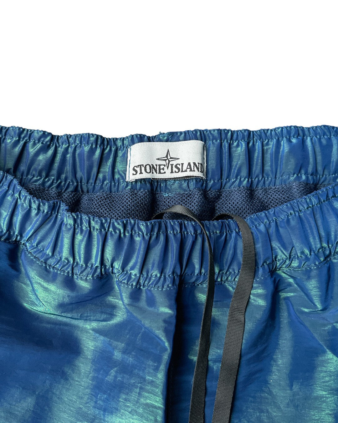 Шорти виготовлені з тканини Nylon Metal. Металізований, переливчастий ефект Nylon Metal є однією з найбільш універсальних тканин, розроблених лабораторією STONE ISLAND, і доповнюється різнокольоровими відтінками завдяки фарбуванню ниток. Готовий виріб пройшов двоступінчасту процедуру фарбування, що підкреслює переливи кольорів моделі.
