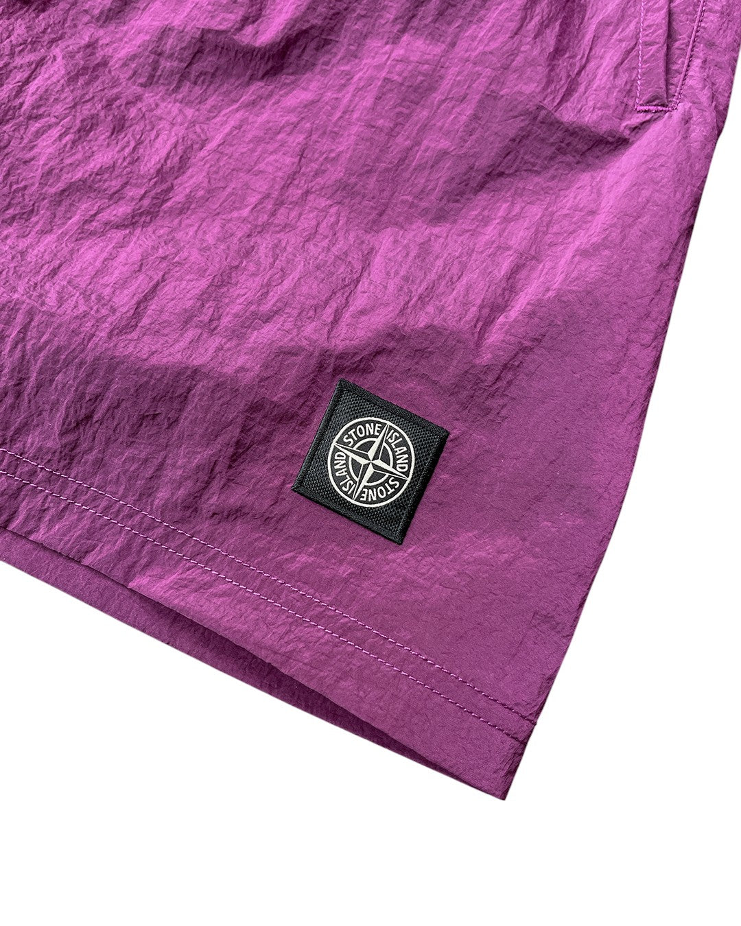 Ці шорти для плавання, виготовлені з фірмової нейлонової металевої тканини Stone Island, були фарбовані в готовому вигляді, щоб надати їм ледь помітного переливаючогося блиску. Шорти для басейну з нашивкою у вигляді компаса оснащені трьома практичними кишенями.