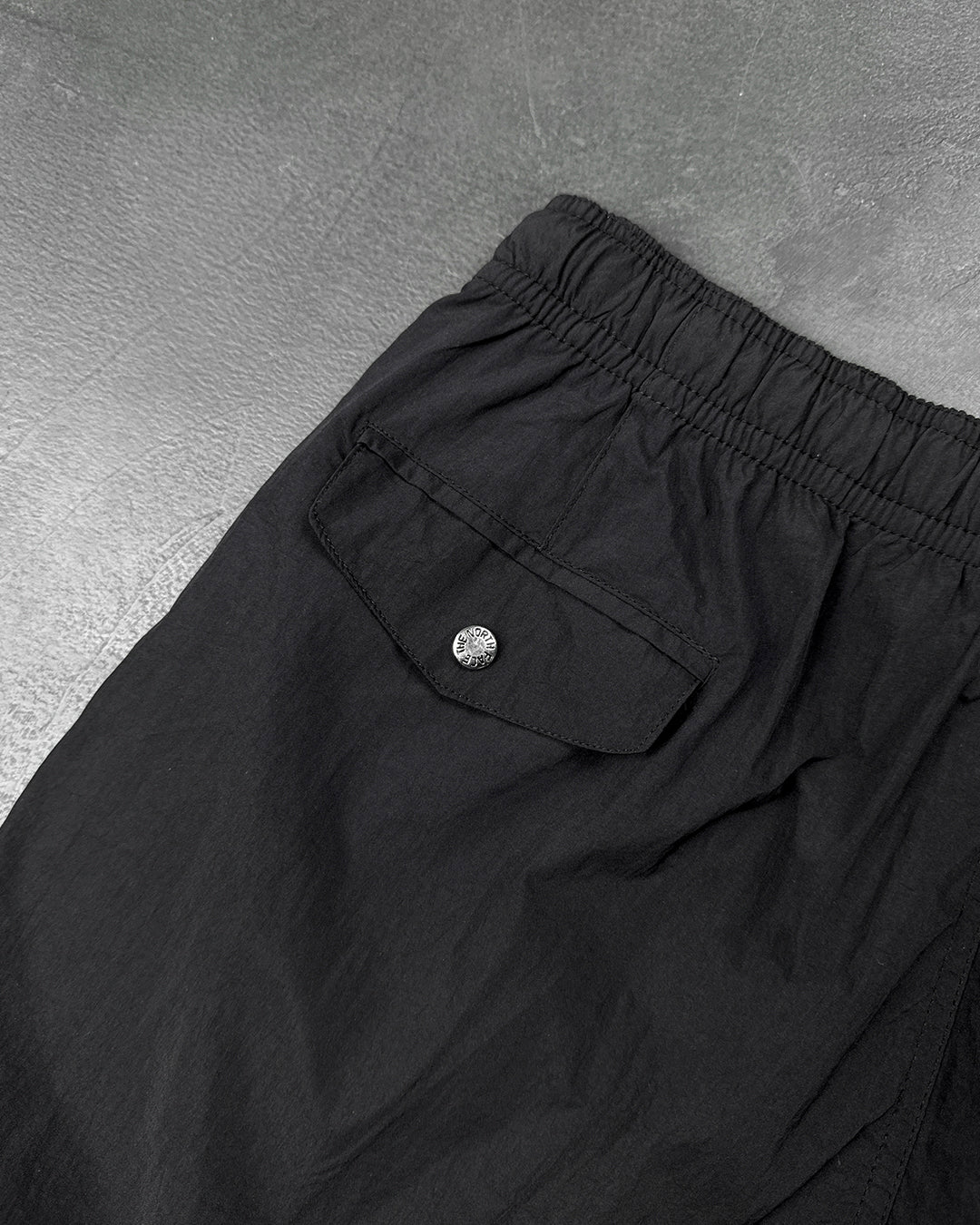 Гібридна тканина з використанням суміші переробленого поліестеру та льону для основи, підкладка з переробленої поліефірної сітки. Еластичний пояс та вишитий логотип спереду і ззаду.