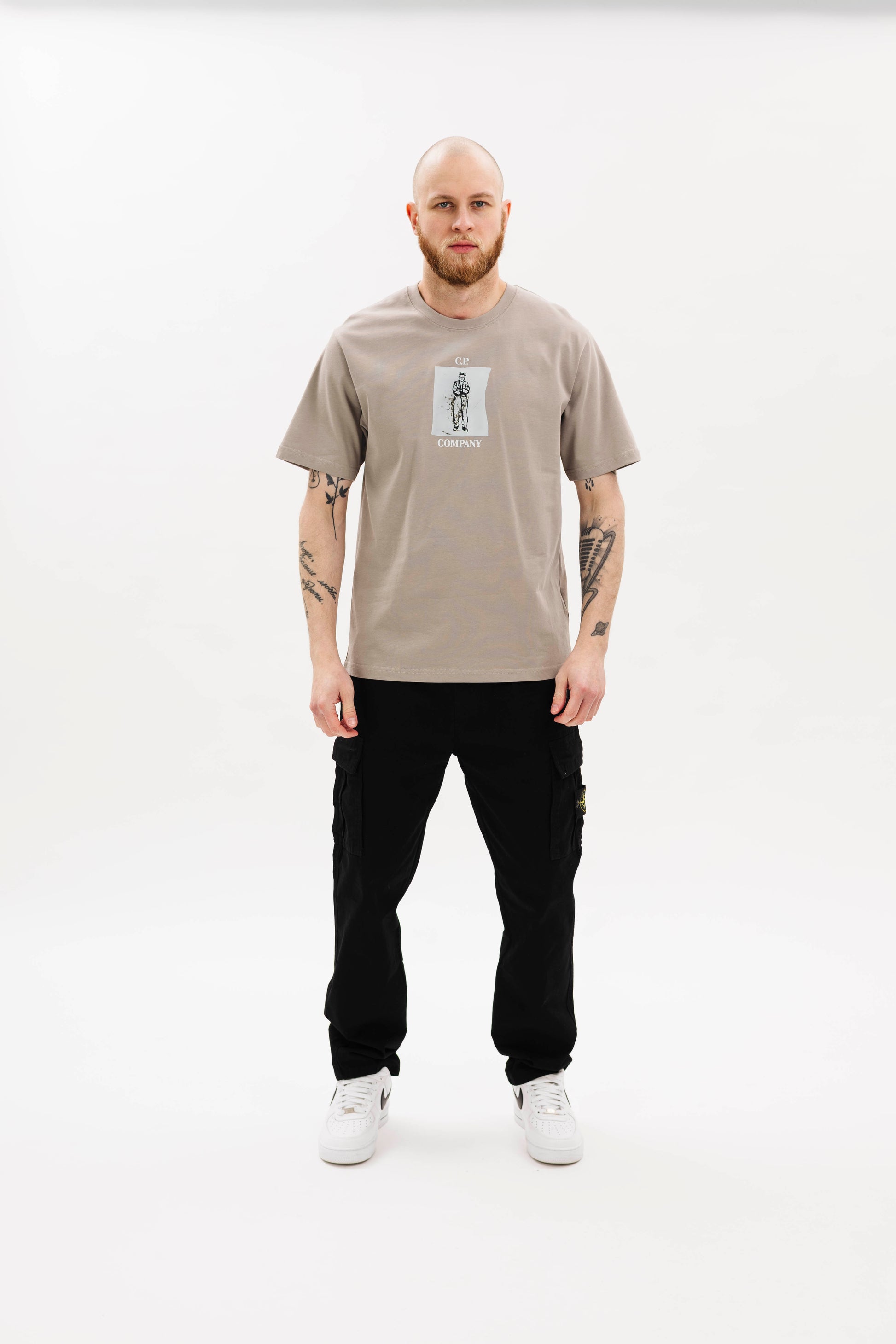 C.P. Company 30/2 Mercerized Jersey Twisted Graphic T-Shirt Grey