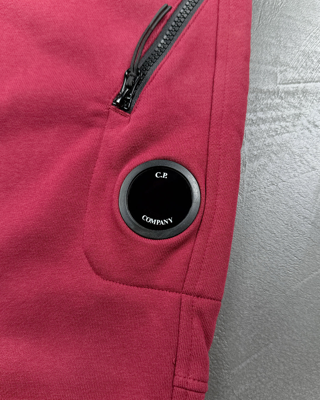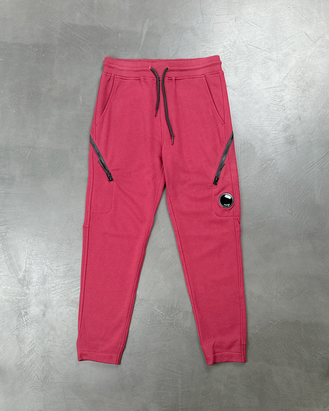 C.P. Company Diagonal Raised Fleece Double Zip Lens Sweatpants Red
