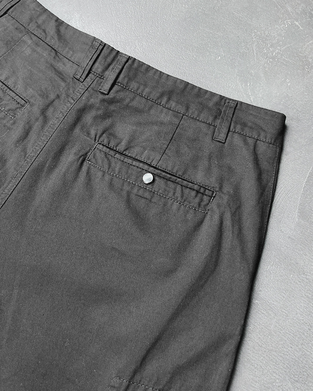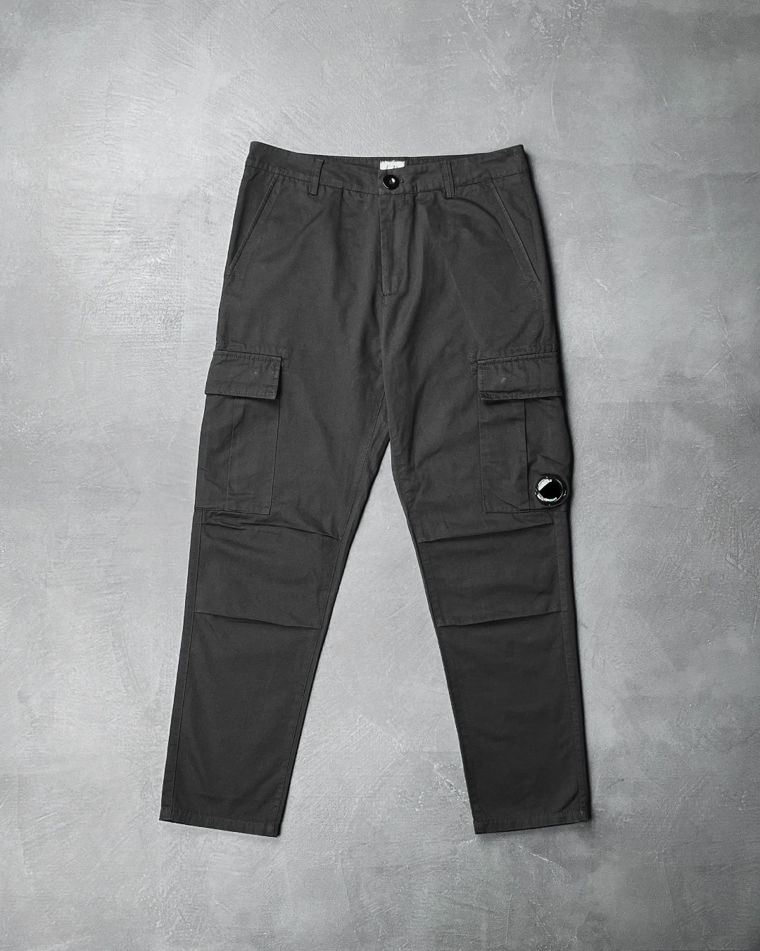 Функціональні карго-штани створені у зручному крої з поясними петлями, застібкою на блискавку та гудзик, а також зі скошеними кишенями для рук. Завершуються двома задніми кишенями, двома карго-кишенями з клапанами і деталлю у вигляді лінзи від C.P. Company. Виготовлені з легкої пружної матерії Stretch Sateen - матової бавовняної тканини з еластичністю, що забезпечує гнучке і міцне облягання. Фарбовані після пошиття для збільшення глибини і насиченості кольору.